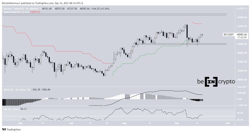 Seit dem Abprallen an der 43.950 USD-Marke am 13. September ist BTC im Aufwärtstrend. In den darauffolgenden zwei Tagen wurden zwei aufeinanderfolgende bullische Candlesticks erzeugt.