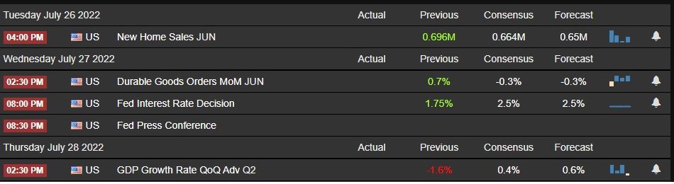 Darüber hinaus erscheinen am Donnerstag, dem 28. Juli 2022, die Daten über das Bruttoinlandsprodukt des zweiten Quartals der USA. Negative News über die Wirtschaftsdaten des Landes könnten weitere Rezessionsängste auf den Märkten schüren und sich ebenfalls negativ auf den US-Aktienmarkt auswirken.