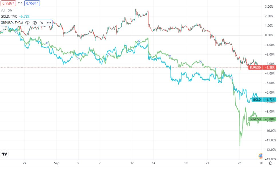 Wie Sky News berichtet, verkündete die britische Zentralbank, im Rahmen einer Schuldmarktoperation die Stabilität der britischen Märkte sichern zu wollen. Laut dem News-Portal möchte die Bank “mit allen nötigen Mitteln” den britischen Finanz- und Anleihenmarkt schützen. Dazu will die Zentralbank Staatsanleihen kaufen und weitere Schulden in Kauf nehmen. Die damit verbundene Ausdehnung der Geldmenge schwächt den Pfund weiter gegenüber anderen Währungen ab.