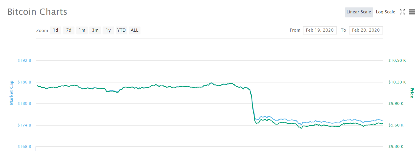 Bitcoin ist erneut an der dauerhaften Überwindung der Resistenzlinie bei $10.000 gescheitert. Dabei verlor die Kryptowährung fast $1000 innerhalb einer Stunde an Wert. Dies ist der fünftgrößte Preissturz in der Geschichte von Bitcoin.