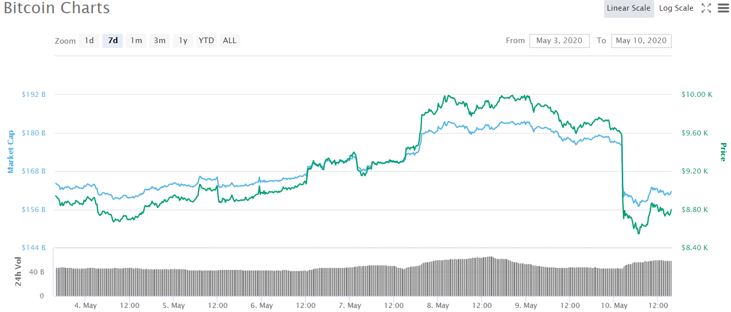Zur Stunde wird Bitcoin für einen Preis von knapp $8800 gehandelt, rund 9,2% weniger, als zur selben Zeit gestern.