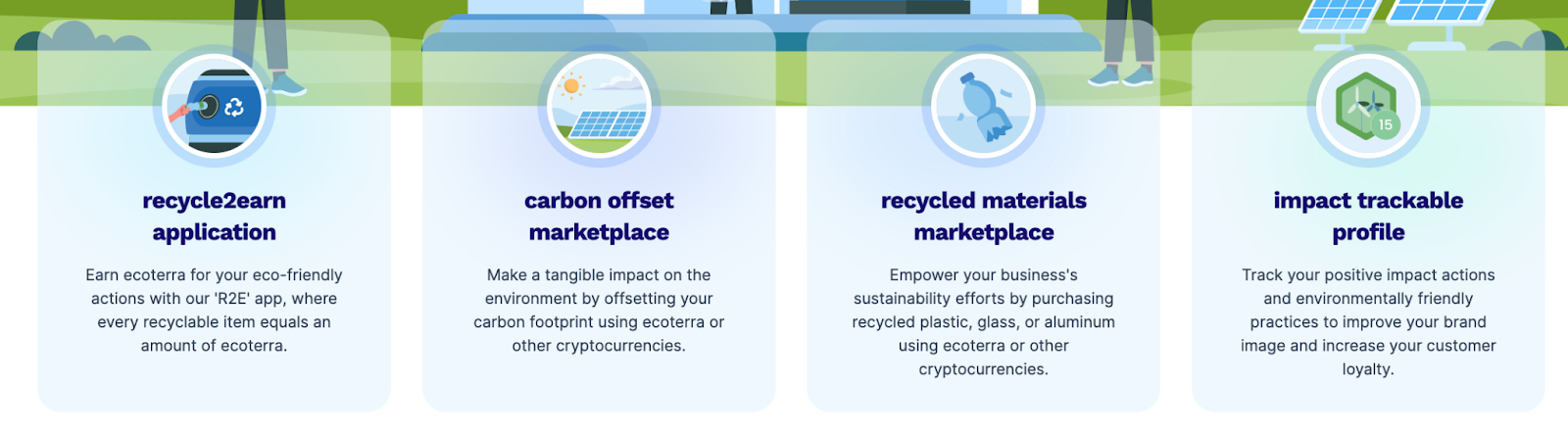 Das Projekt wurde mit der expliziten Absicht ins Leben gerufen, den Einsatz erneuerbarer Energien in der Kryptowährungs-Mining-Industrie zu fördern. Die EcoTerra-Blockchain wird durch umweltfreundliches Mining betrieben, das auf erneuerbaren Energien basiert, was bedeutet, dass jeder Coin, der durch das Netzwerk erstellt wird, einen minimalen CO₂-Fußabdruck hat.