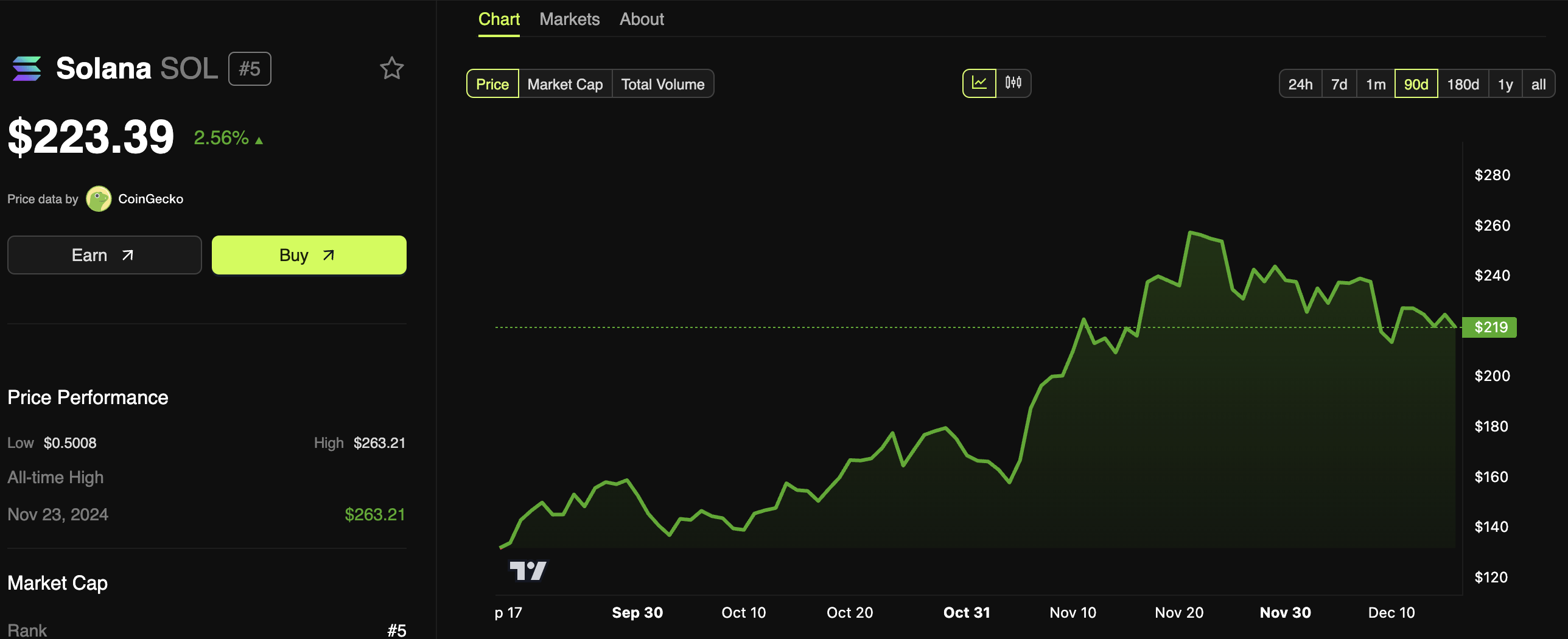 Der Solana-Kurs erfährt kürzlich Korrekturen, nachdem er den allgemeinen bullischen Krypto-Markt im November genossen hat. Jedoch hat der Kurs des Assets es geschafft, einen vollständigen Kurssturz zu vermeiden, und SOL zeigt immer noch Anzeichen von bullischem Schwung. Bisher hat diese Entwicklung von Bitwise noch keinen merklichen Einfluss auf die Solana Token-Kurse.