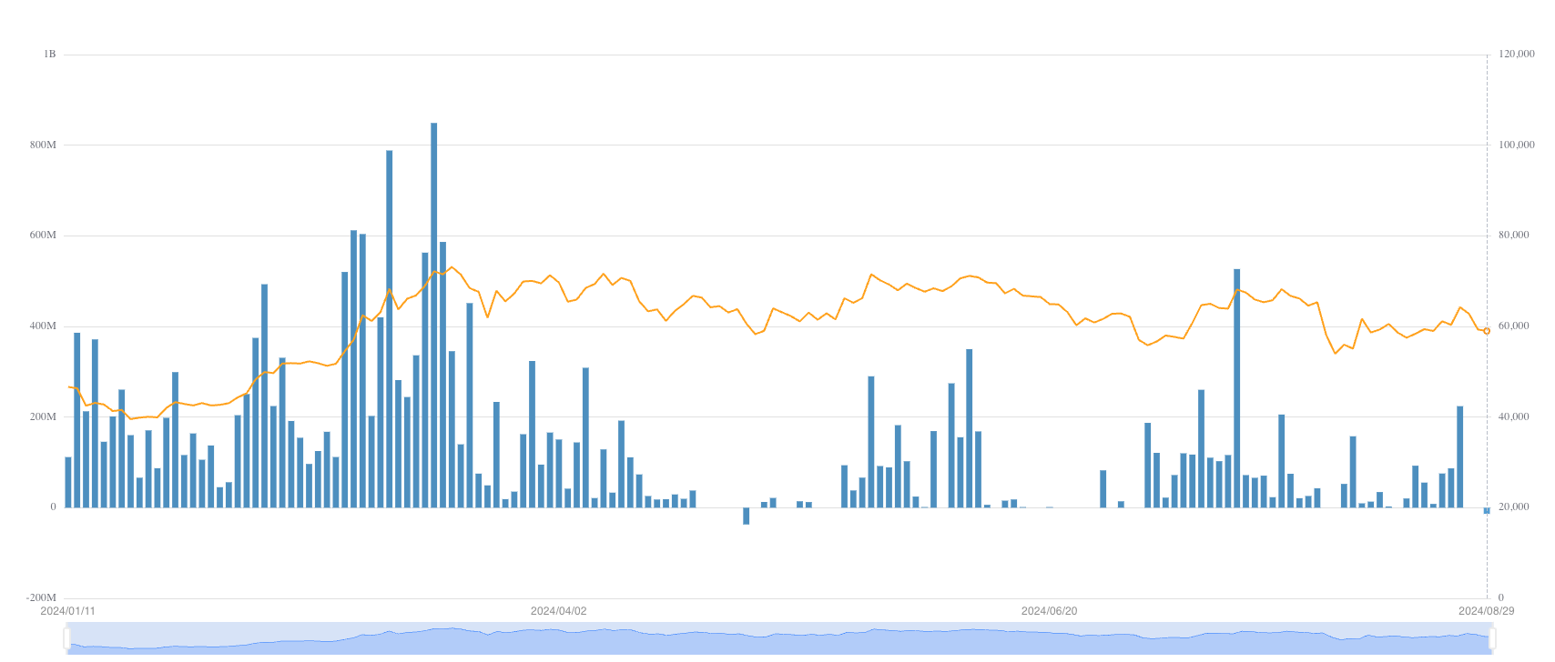 Zudem hat sich das dritte Quartal oft als herausfordernd für Bitcoin und den breiteren Krypto-Markt erwiesen. Da der September bevorsteht, positionieren sich die Investoren vorsichtig und erwarten den traditionellen Abschwung. Diese strategische Verschiebung zeigt sich in den jüngsten Abflüssen aus verschiedenen BTC Spot ETFs, einschließlich des iShares Bitcoin Trust von BlackRock.