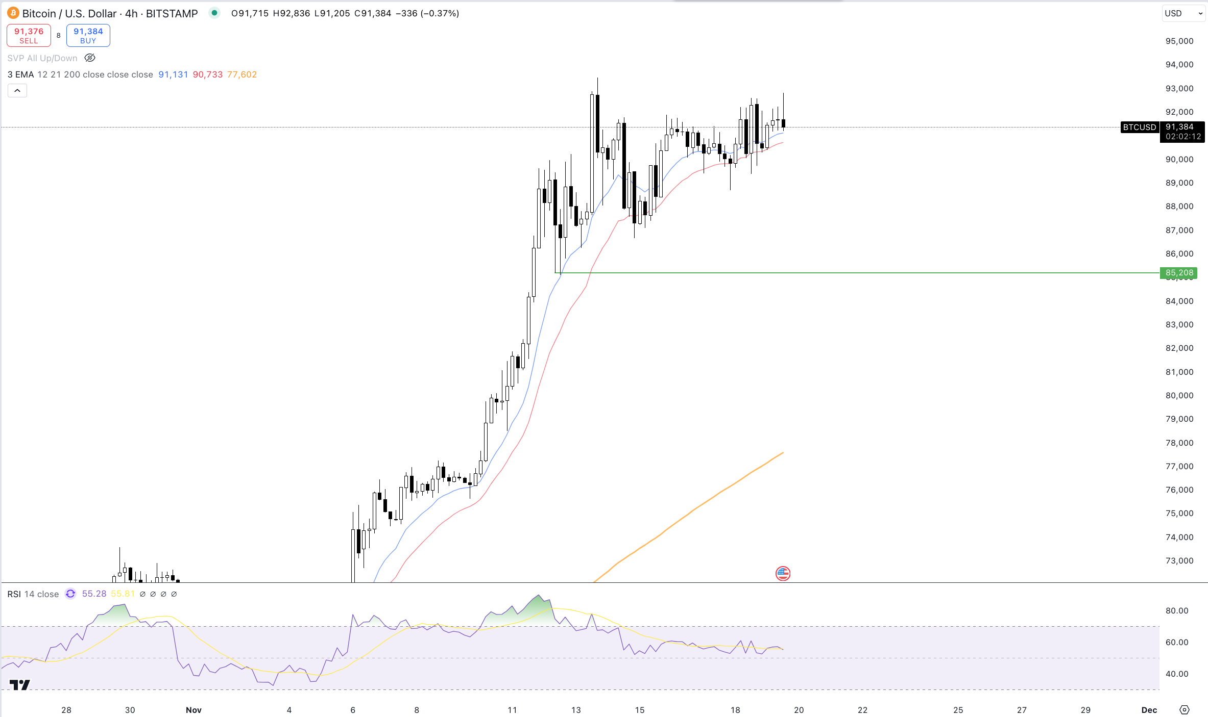 Aktuell handelt Bitcoin bei etwa 91.400 USD und sollte der Kurs seinen Aufwärtstrend hier nicht halten, könnte er bis auf die Unterstützung bei etwa 84.000 USD fallen. Händler sollten daher wohlüberlegte Entscheidungen treffen.