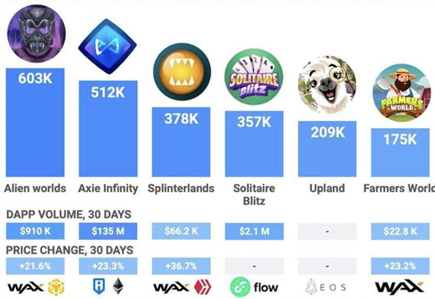 Laut den Daten von DappRadar behält Alien Worlds die Krone unter den Blockchain-Games, während die Token-Preise der Top-Spiele weiter steigen.
