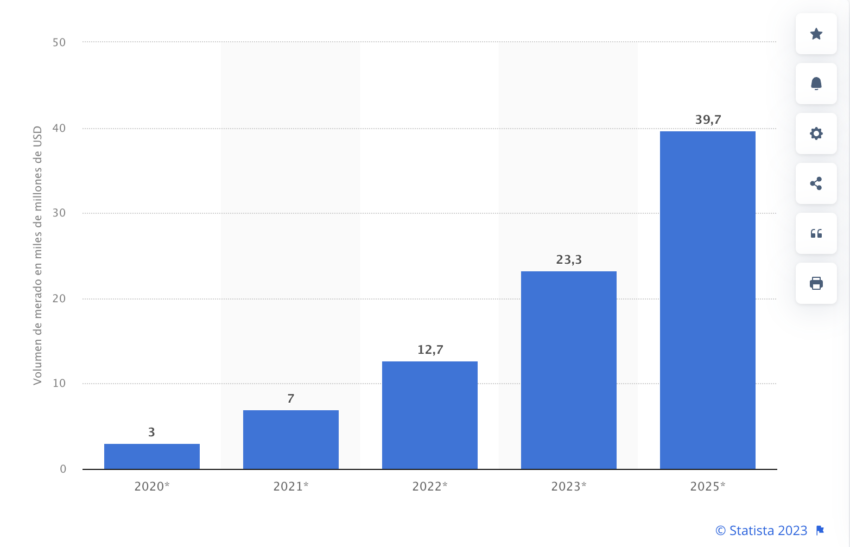 Das weltweite Blockchain-Marktvolumen lag 2022 bei 7,4 Milliarden Dollar, dank Initiativen wie JPMorgans “JPM Coin”. Quelle: Statista