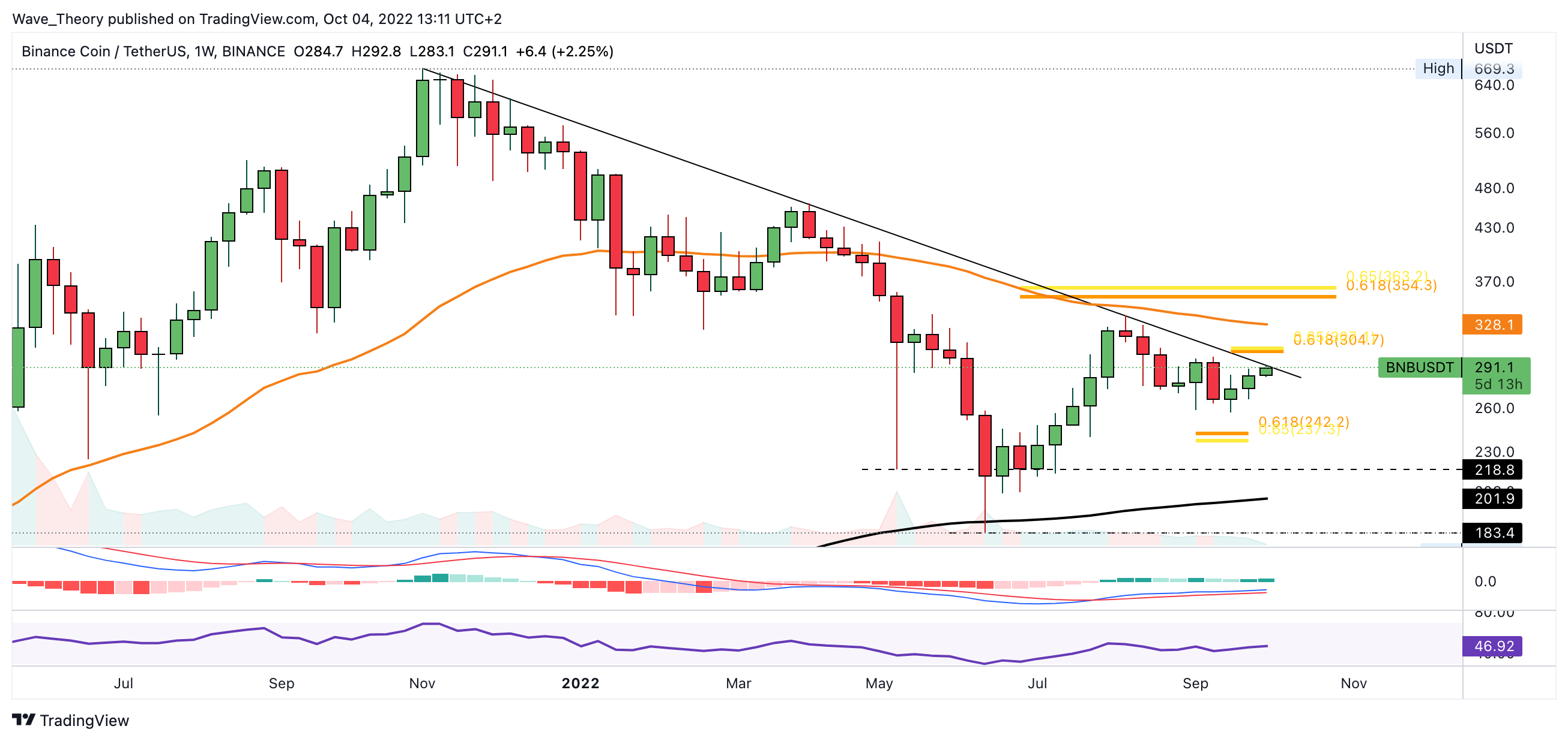 SponsoredAuf Unterstützung stößt BNB bereits zwischen rund 257 USD und 263 USD oder spätestens an der Golden Ratio bei rund 240 USD.