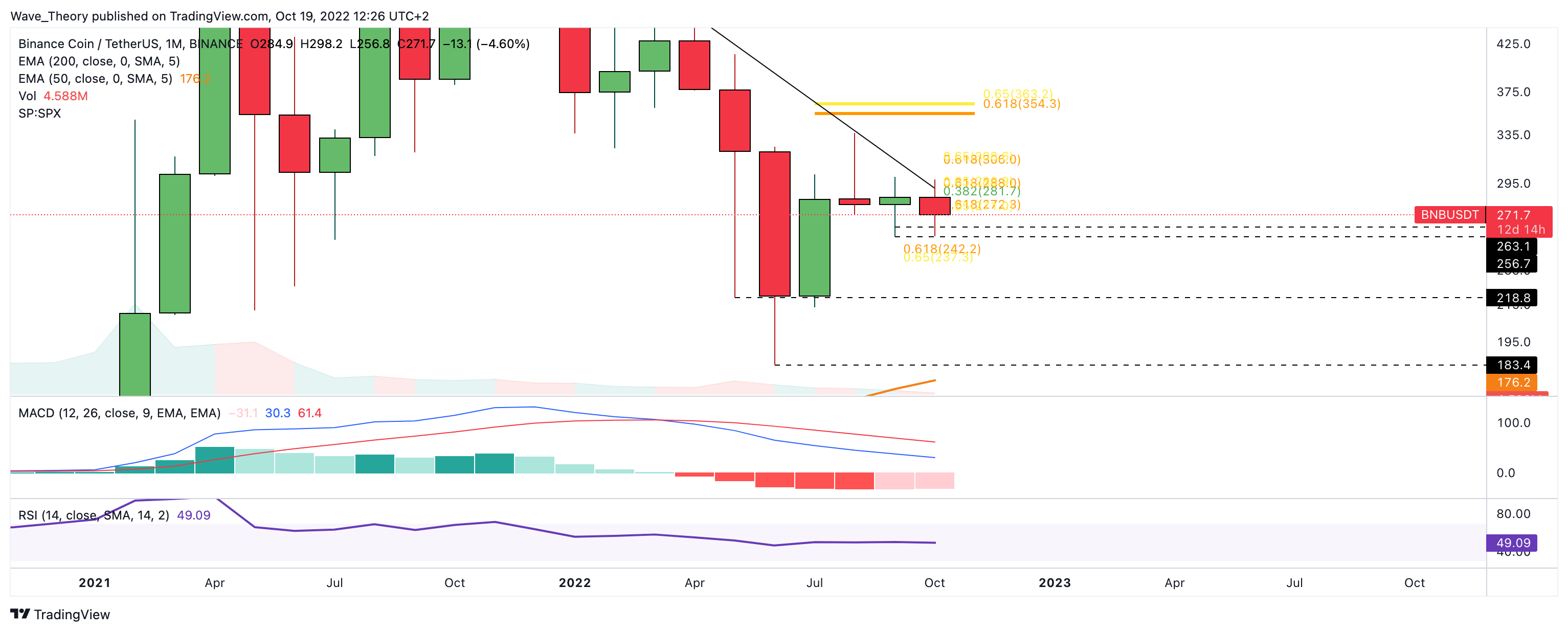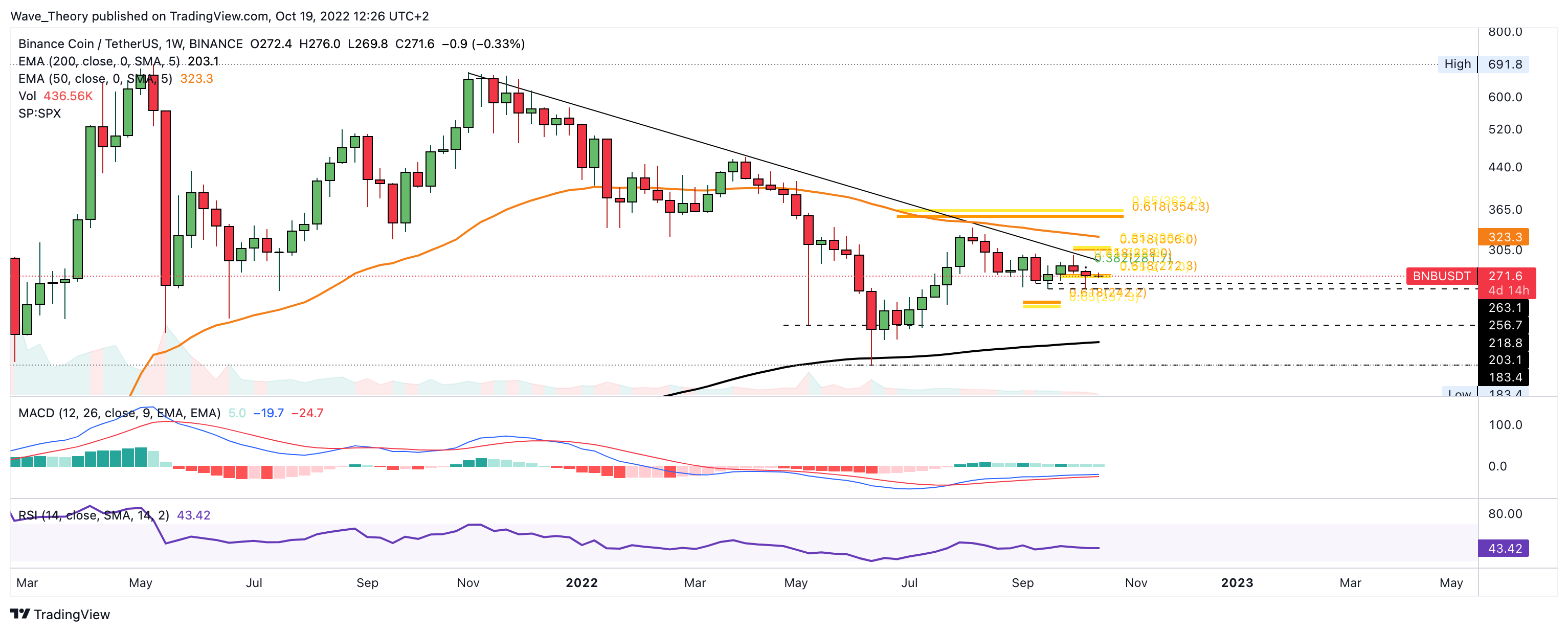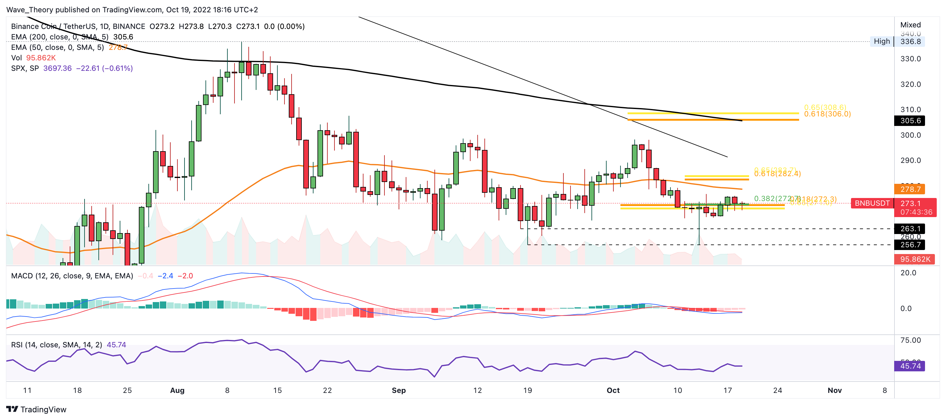 In der letzten BNB Kurs Prognose schrieben wir: “Der Binance Coin Kurs konnte die bärische Trendlinie nicht brechen, womit die Golden Ratio bei rund 305 USD unerreicht blieb. Stattdessen fiel der BNB Kurs die letzten Tage sehr stark, womit sich BNB jetzt an der Golden Ratio Unterstützung bei rund 270 USD befindet.
