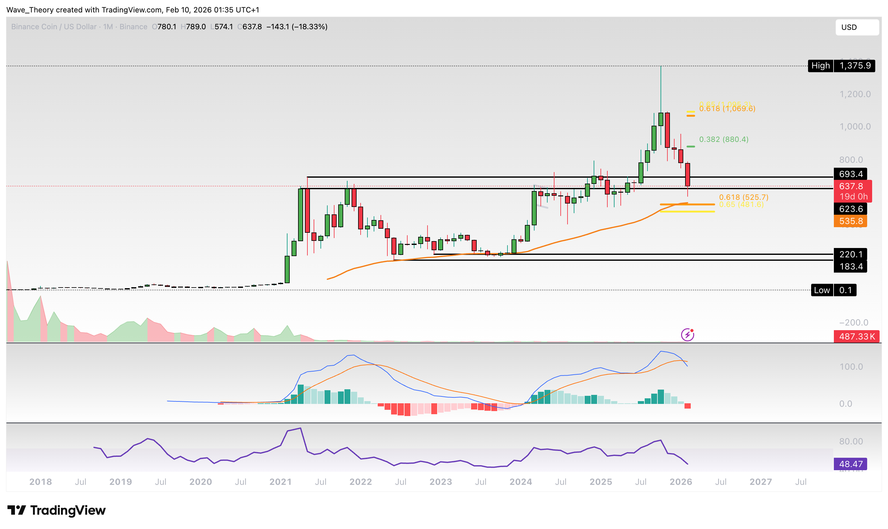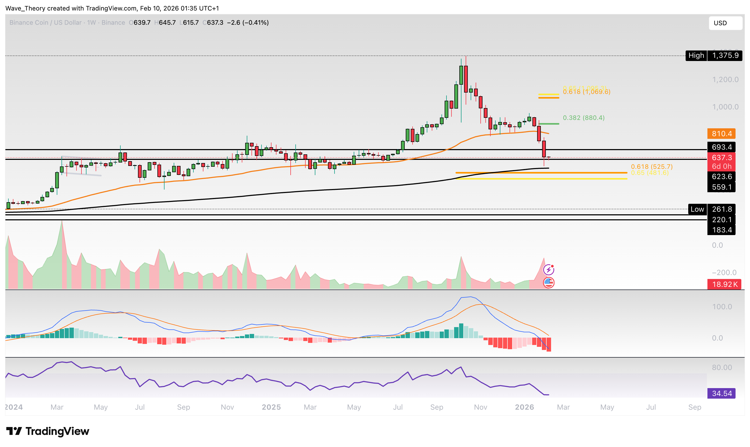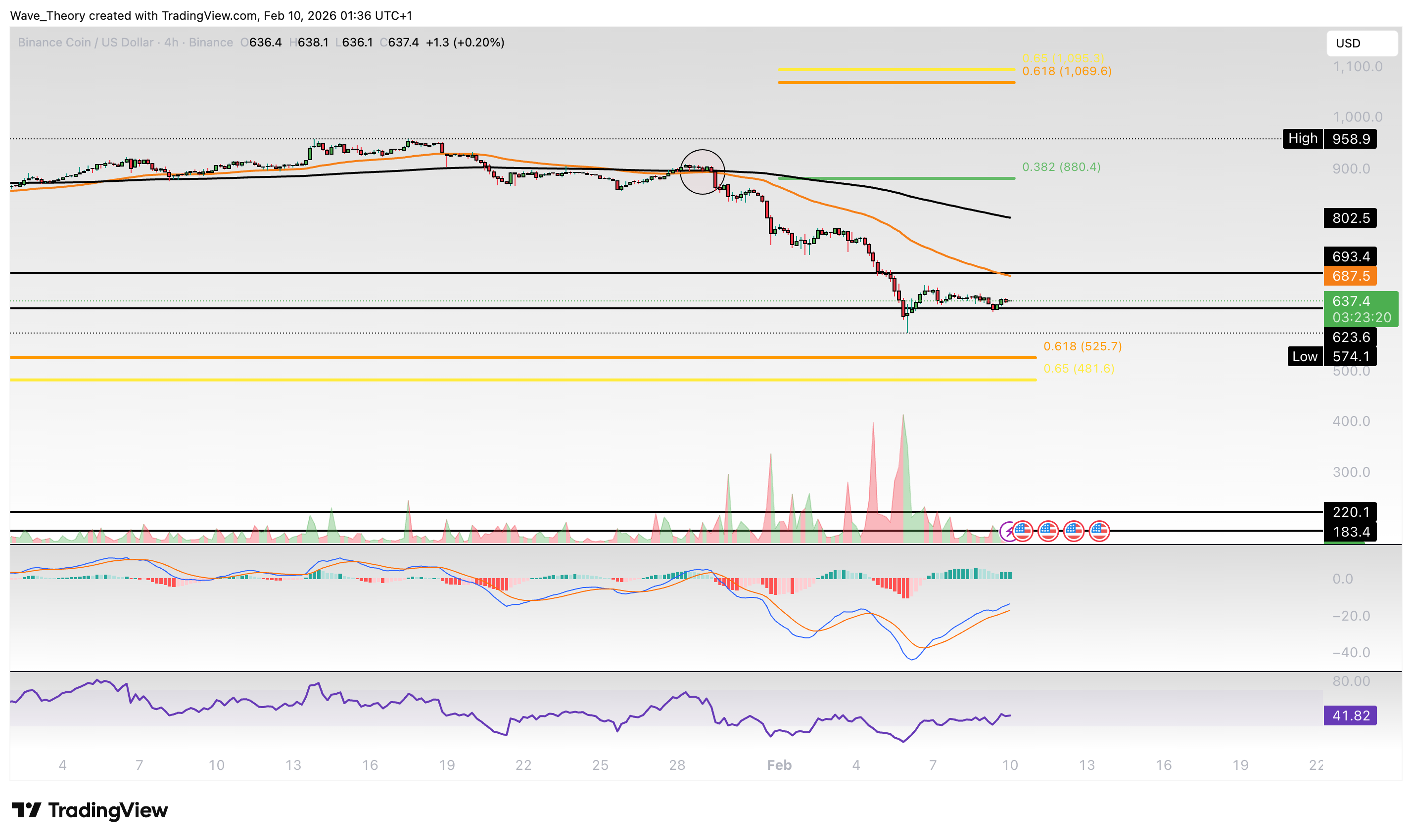BNB-Prognose für Mittwoch, 11. Februar 2026: Nachdem der BNB Kurs ein ATH im Oktober letzten Jahres erreicht hat, ist er innerhalb der letzten Monate rund 58 % gefallen.