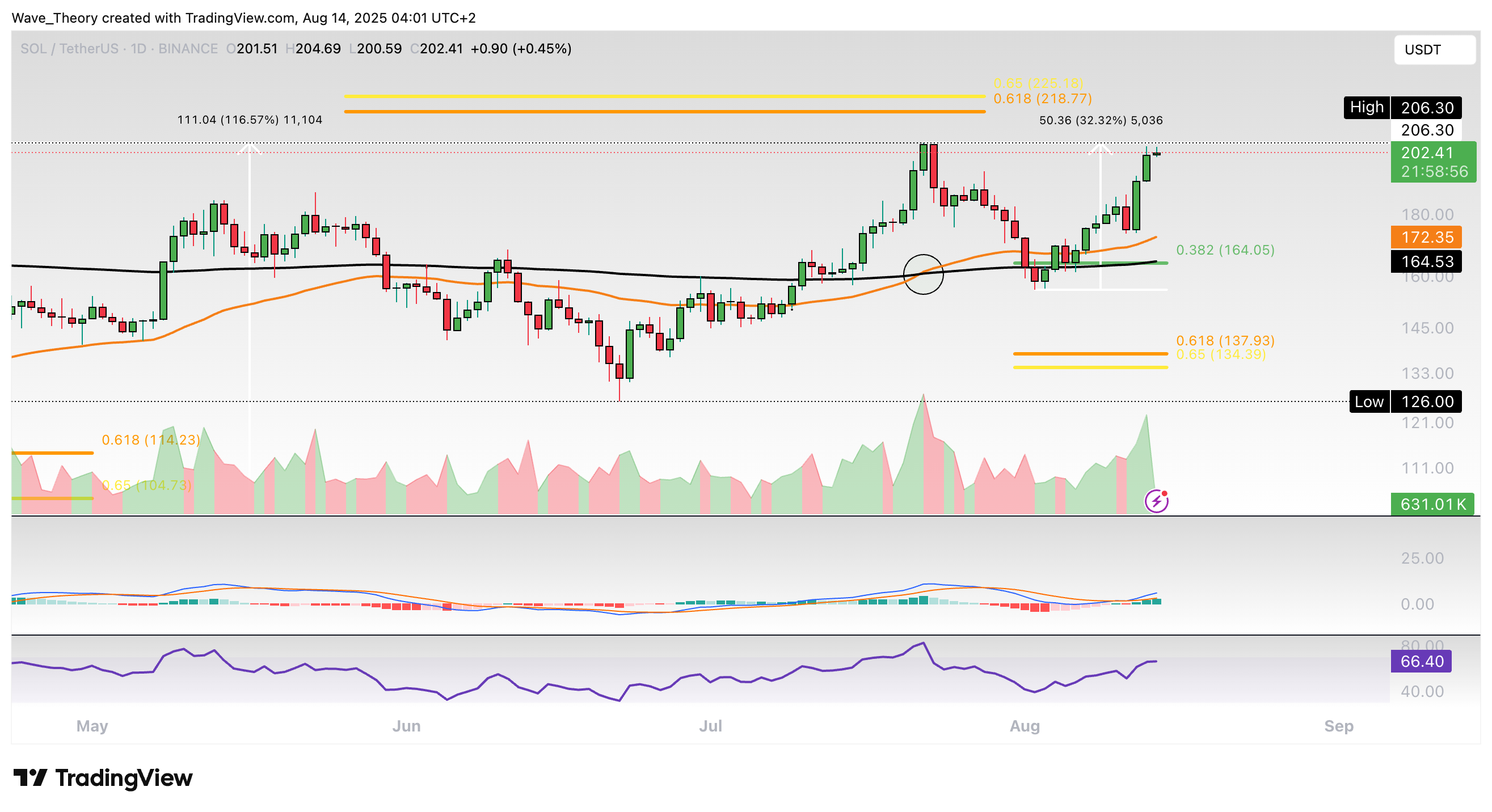 Solana-Prognose für Donnerstag, 14. August, 2025: Der Solana Kurs ist nicht mehr weit entfernt von kritischem Golden Ratio Widerstand.