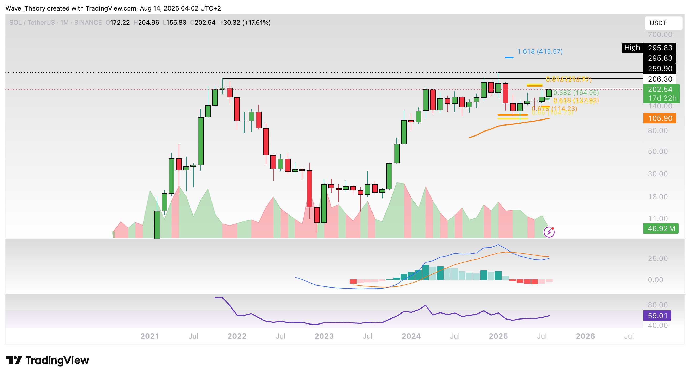 Erst mit dem Bruch der Golden Ratio bei rund 220 USD ist die Korrekturphase beendet. Dann könnte Solana zum Widerstandsbereich zwischen rund 260 USD und 296 USD zurückkehren.