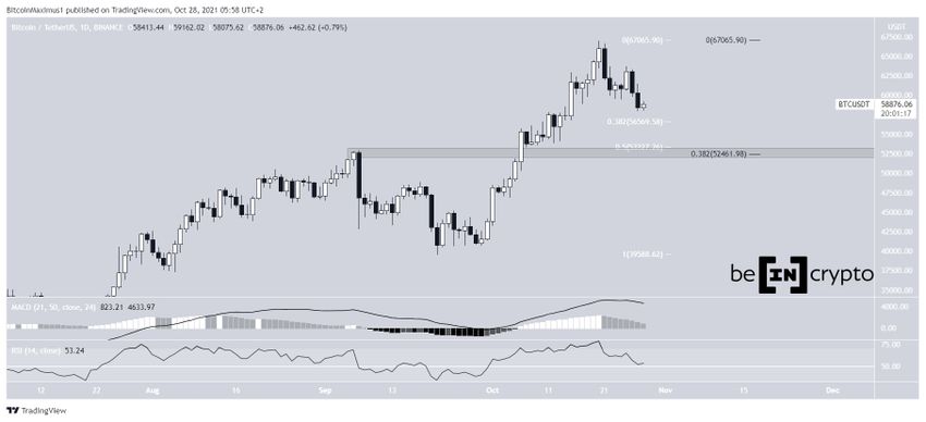 Seit dem Erreichen eines Allzeithochs von 67.000 USD am 20. Oktober ist der Bitcoin Kurs gefallen. Der Rückgang beschleunigte sich am 26. Oktober, und BTC erreichte am nächsten Tag einen Tiefstand von 58.000 USD.