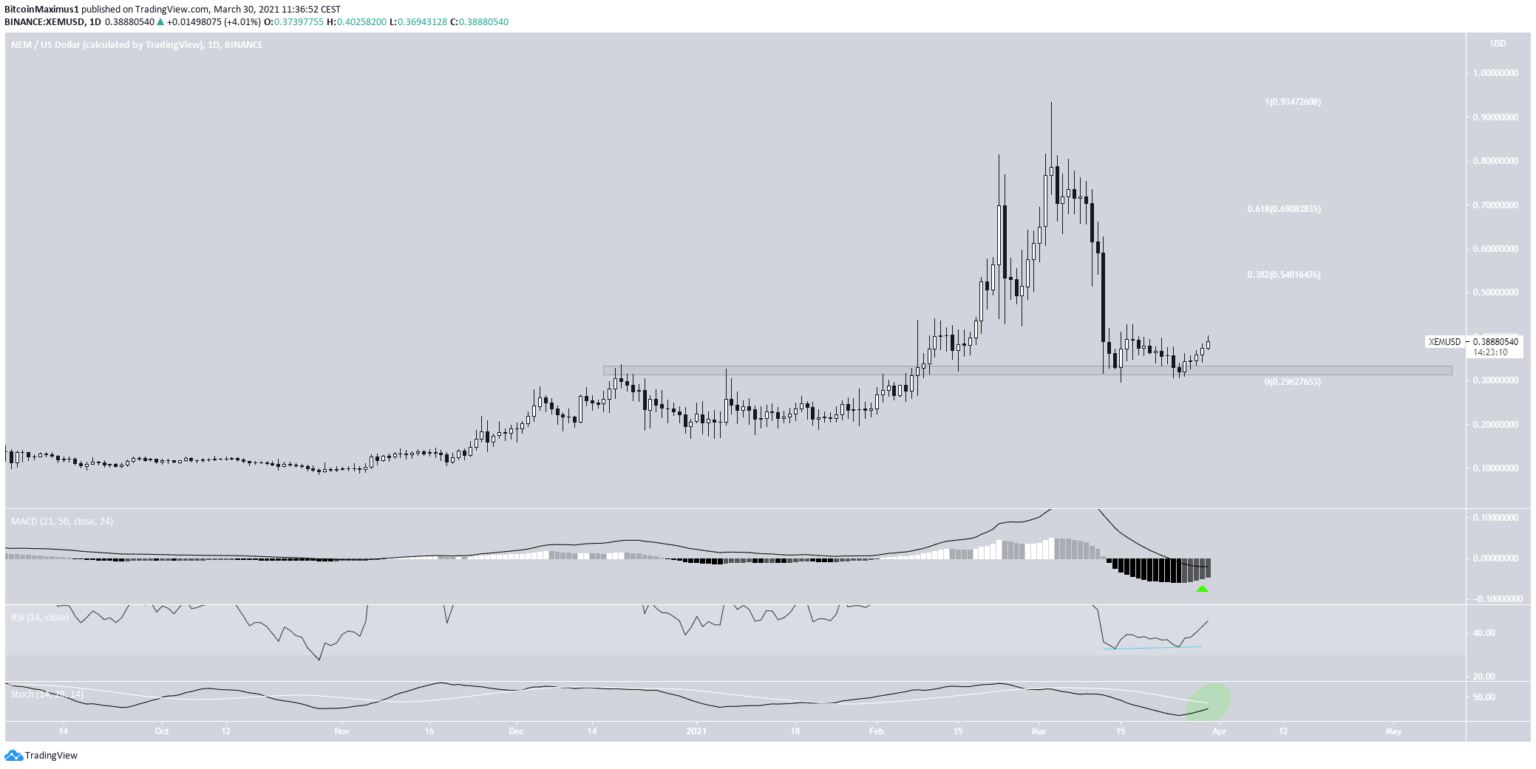 Der XEM Preis ist seit seinem letzten Allzeithoch (0.93 USD) vom 13. März 2021 weiter gefallen. Der Kursabstieg auf das Support-Level bei 0.33 USD dauerte aber nicht besonders lange.