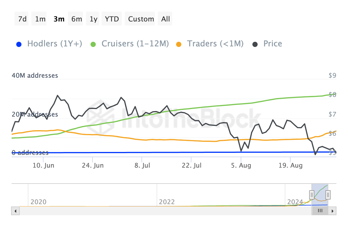 Am 2. September zeigten Daten von IntoTheBlock einen Anstieg der Händlerzahl um 53 Prozent. Händler sind in diesem Kontext Adressen, die den Token in den letzten 30 Tagen gehalten haben.