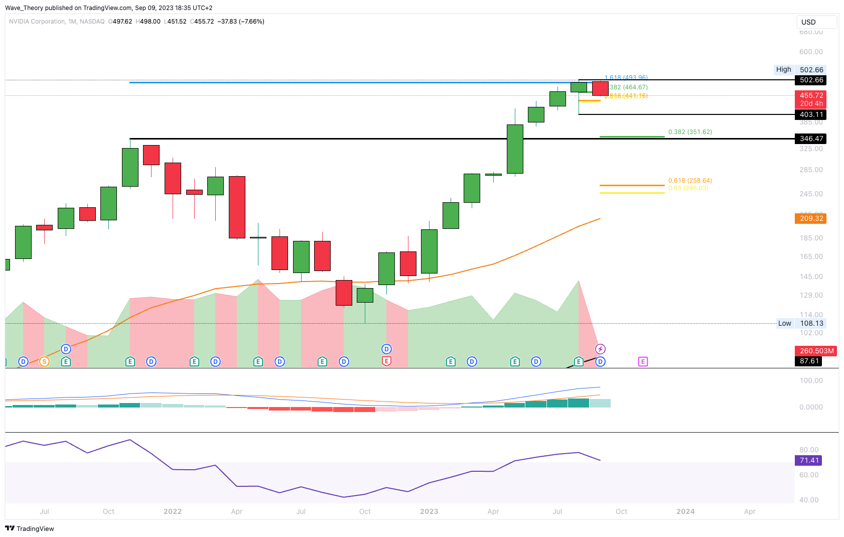Tatsächlich bleibt der Nvidia Kurs auch mittelfristig bullisch, sofern sich der Kurs über der Golden Ratio bei rund 250 USD hält. Bei rund 209 USD fungiert zudem der 50-Monate-EMA als zusätzliche Unterstützung.