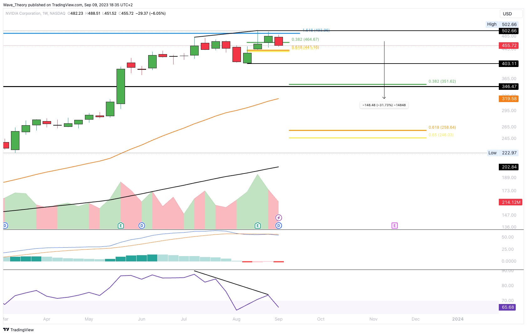 Im Wochenchart der Nvidia Aktie zeichnete sich eine massive bärische Divergenz im RSI ab