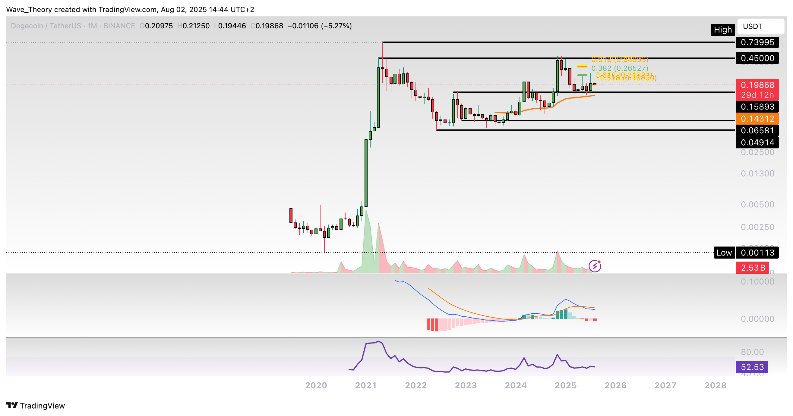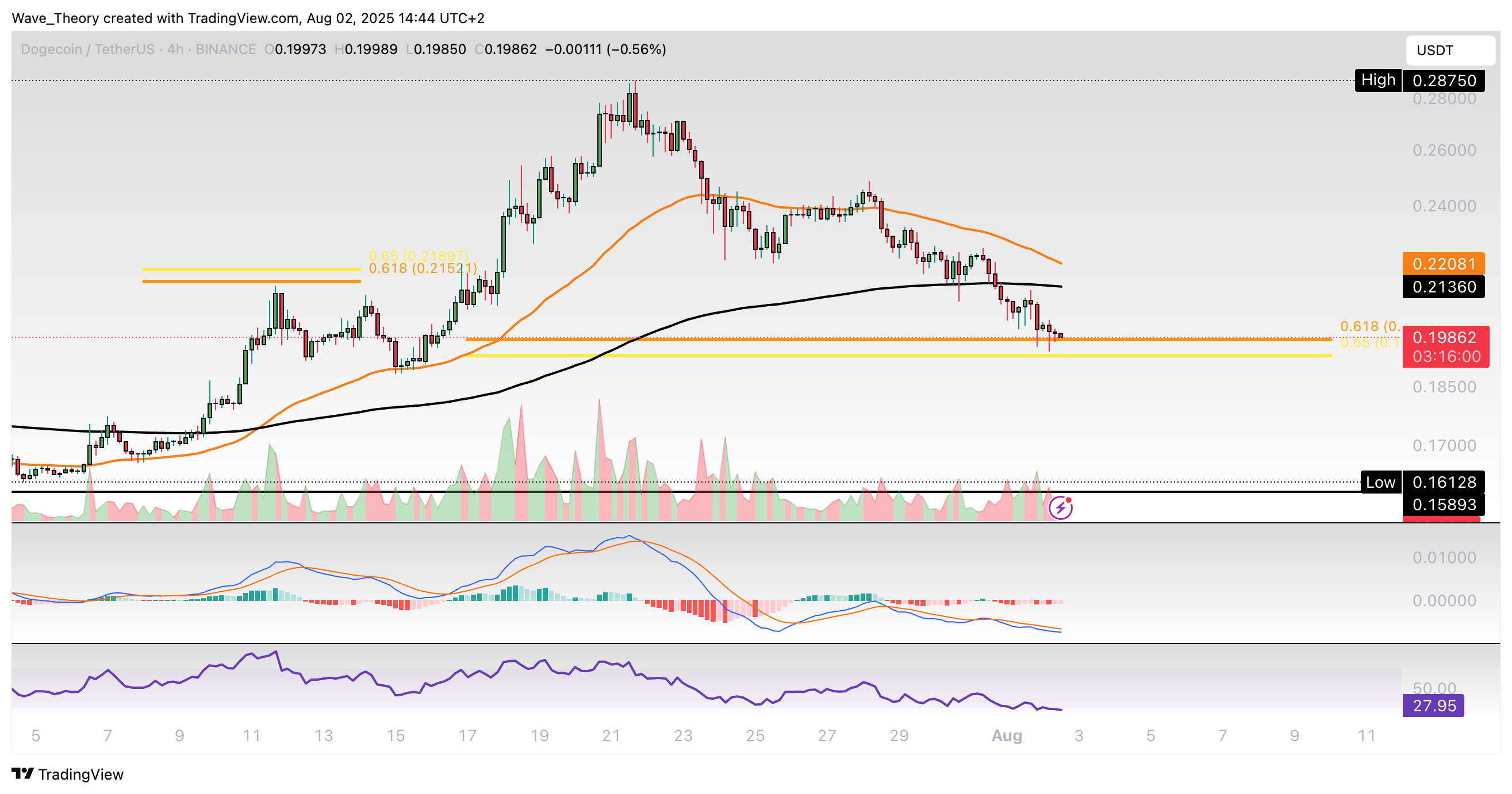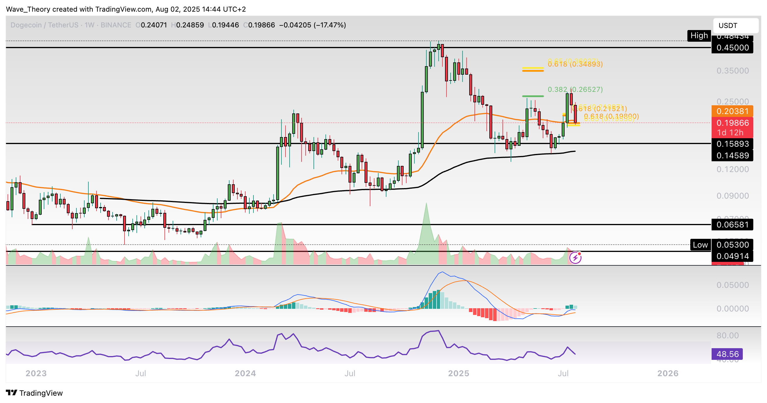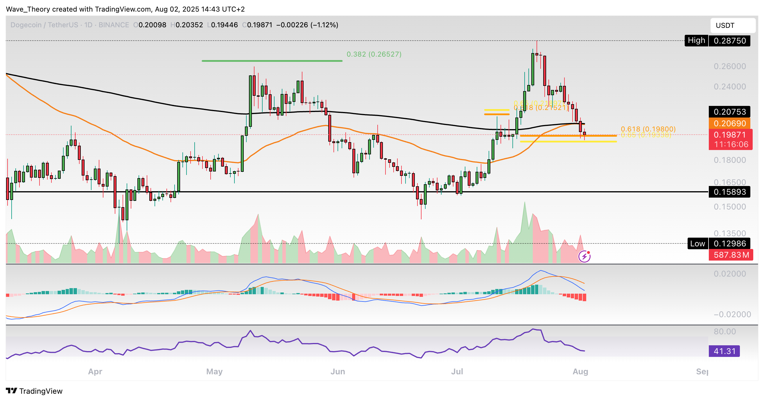 Dogecoin-Prognose für Sonntag, 03. August 2025: Der Dogecoin Kurs hat jetzt wichtige Golden Ratio Unterstützung erreicht, woran der Kurs bullisch abprallen könnte.