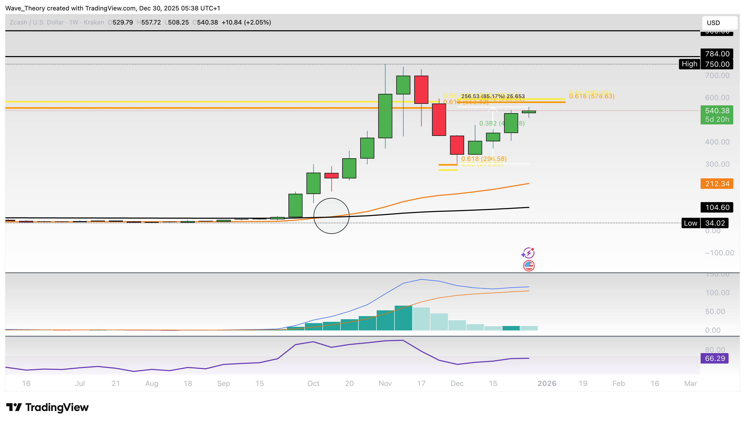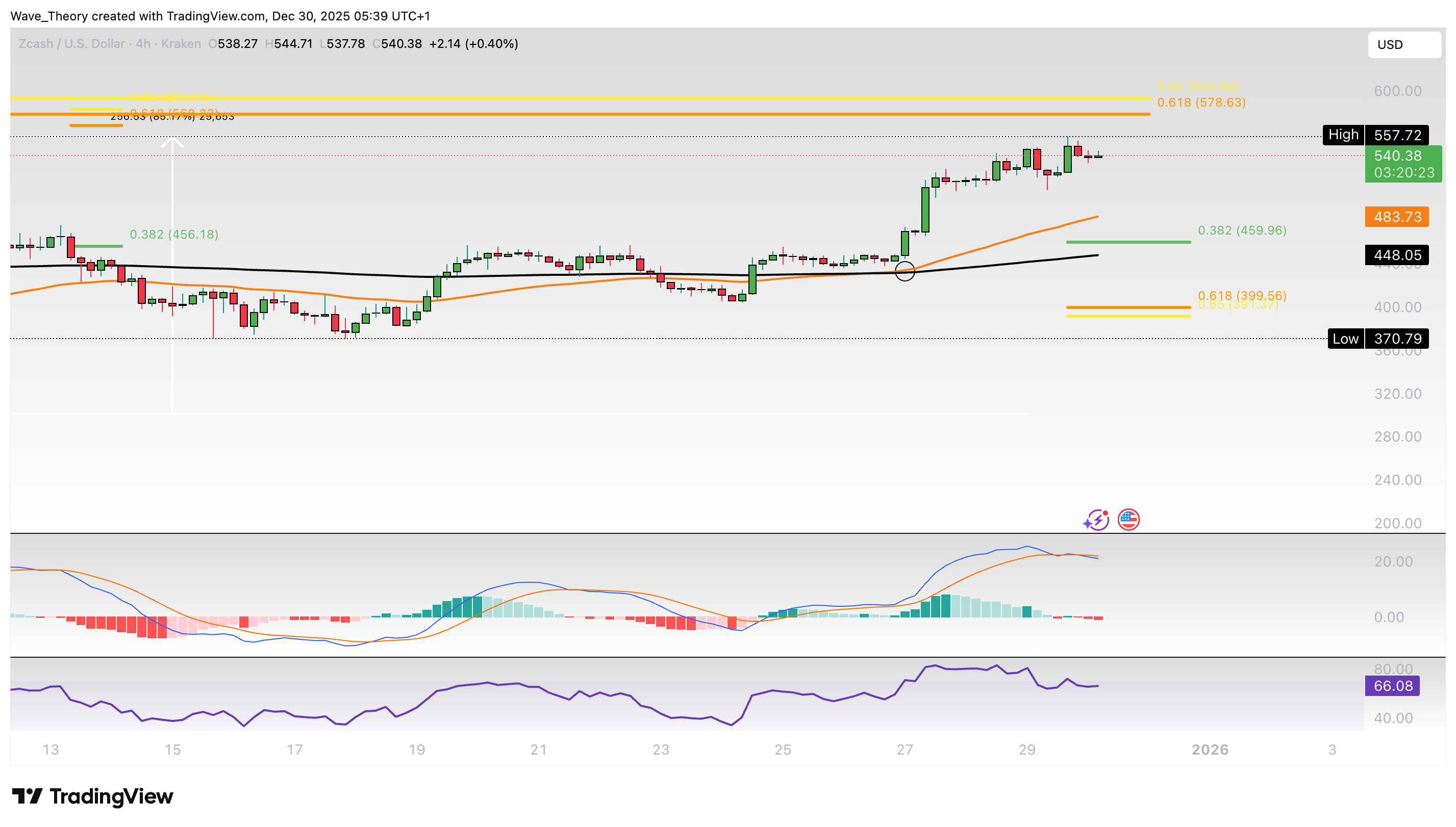 Wird der Zcash Kurs den Golden Ratio Widerstand bei rund 580 USD brechen können?