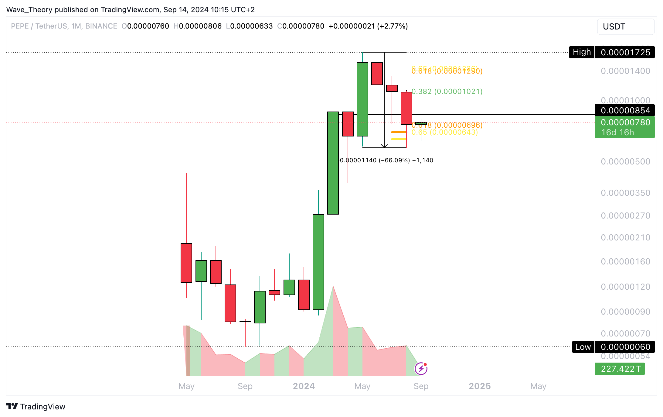 Um die Korrekturbewegung zu beenden, muss Pepe die Fib Widerstände bei rund 0,0000102 USD und 0,000013 USD brechen.