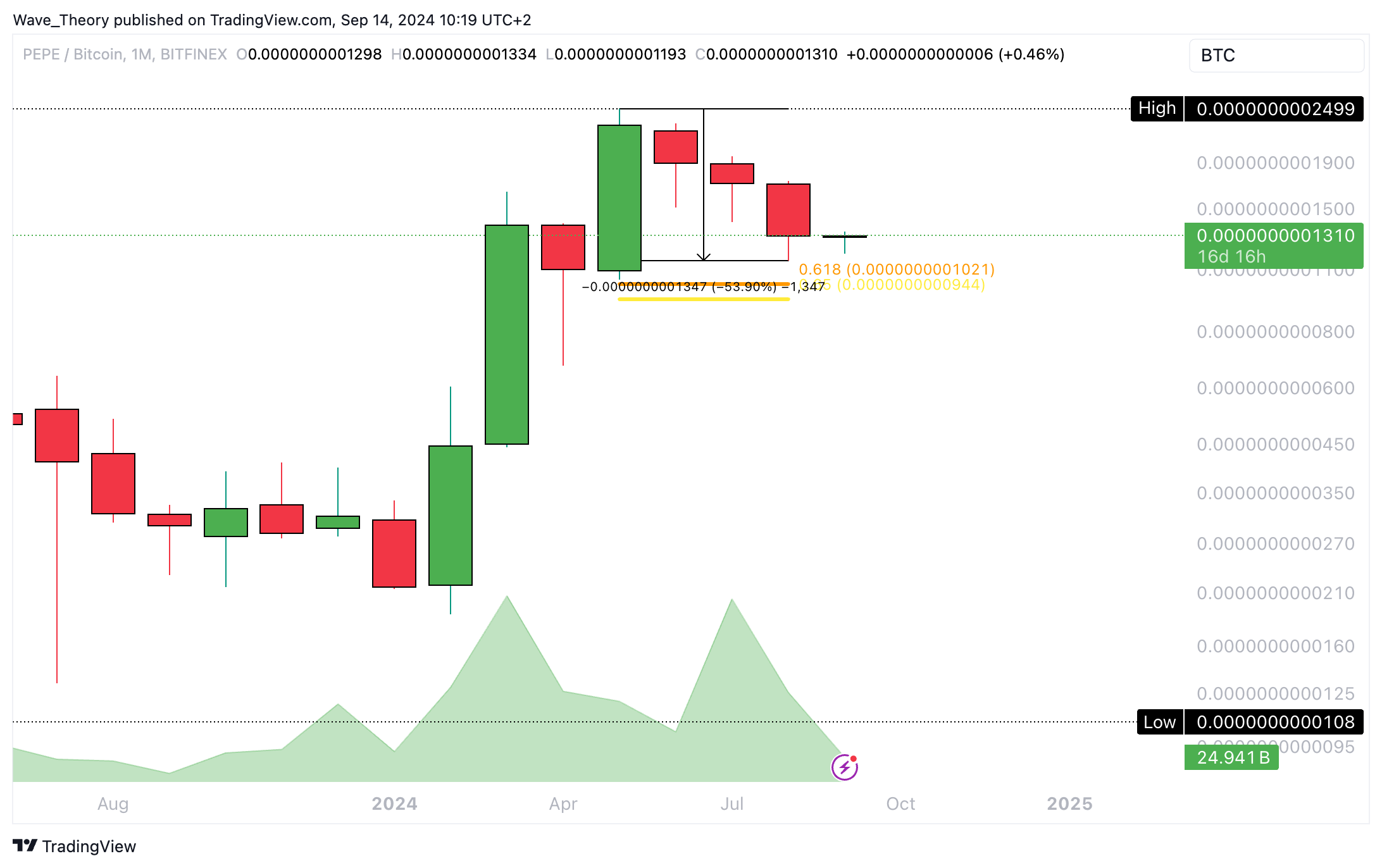 Gegen Bitcoin stößt PEPE bald auf wichtige Fibonacci Unterstützung