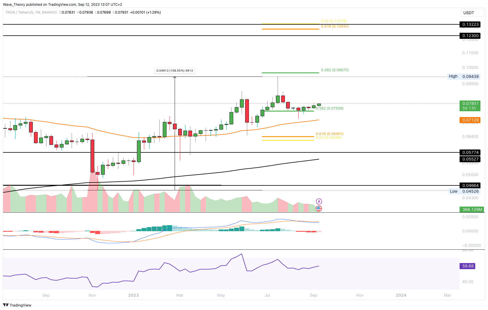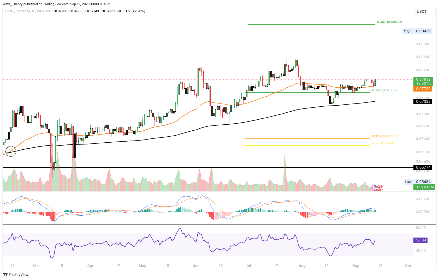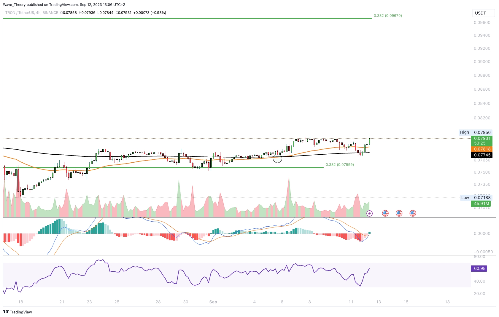 Steigt der TRON Kurs jetzt zum Fib Widerstand bei rund 0,0967 USD?
