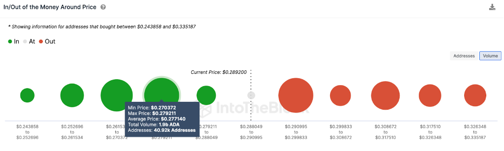 Wie oben gezeigt, hatte die Gruppe von 121.000 Adressen jedoch 1,14 Milliarden Cardano-Münzen zum Höchstpreis von 0,32 US-Dollar gekauft. In diesem Bereich könnten die Verkäufer eine Barriere schaffen, um einen Preisrückgang zu verursachen.