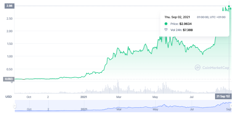 Der Cardano Preis versucht sich bereits an der legendären 3 US-Dollar Marke. Seit dem 20. Juli 2021 befindet sich der ADA Kurs in einem starken Aufwärtstrend, der mit einigen neuen Allzeithochs einher kam. Und auch wenn der Cardano Kurs in den letzten 24 Stunden um 0,91 Prozent gefallen ist, gehört ADA doch zu den stärksten Kryptowährungen in der Bullenrallye diesen Jahres. Zur Cardano Preis Prognose erklärt BeInCrypto´s Trader Maximilian M: