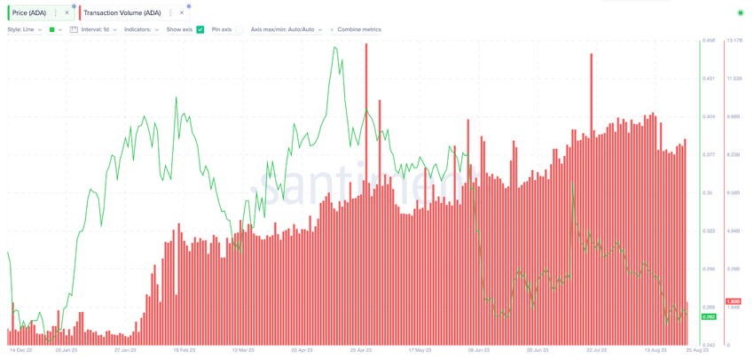 So ist das Cardano-Transaktionsvolumen im zweiten Halbjahr auf neue Spitzenwerte angestiegen. Am 20. August, dem Tiefststand dieses Monats, verzeichnete Cardano ein Transaktionsvolumen von 8,25 Milliarden ADA. Diese Zahl ist um 52 % höher als die 5,42 Milliarden ADA, die in der Spitze des ersten Quartals am 11. März 2023 transferiert wurden.