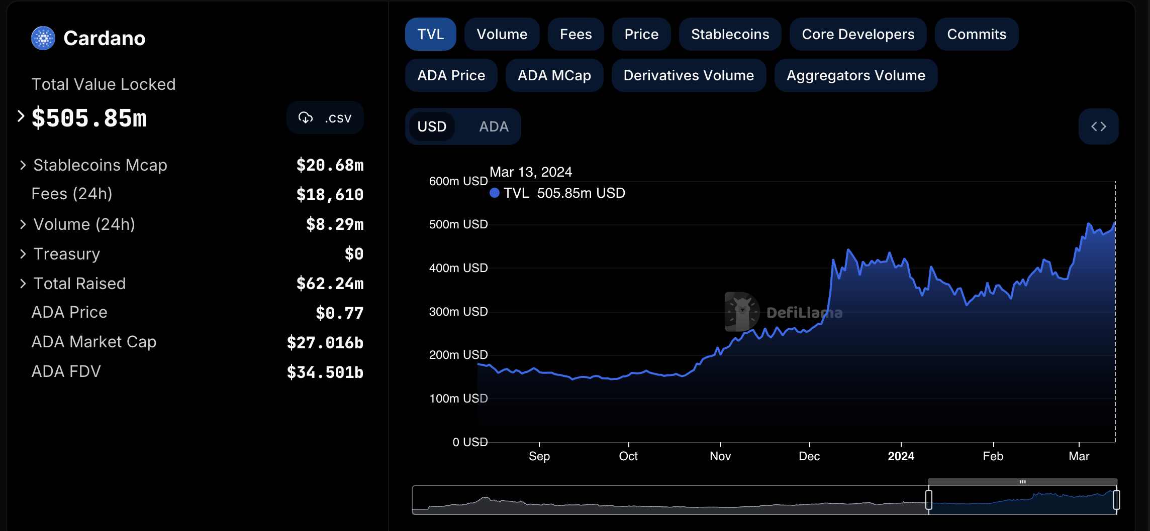 Die Plattform investierte kontinuierlich in Sicherheit, Skalierbarkeit und Interoperabilität, jetzt scheinen diese Investitionen erste Früchte zu tragen. Auch der gesperrte Gesamtwert (TVL) stieg in jüngster Vergangenheit stark an. Wie Daten von DeFiLlama zeigen, überschritt der TVL kürzlich die Marke von 500 Mio. USD und hält sich aktuell bei 505 Mio. USD.