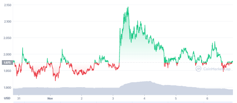 Der Monatsschluss des Oktobers fiel tatsächlich gut für ADA aus. Zwar war der Oktober durch und durch ein bärischer Monat für Cardano, jedoch konnte der ADA Kurs über dem 0,382 Fib Niveau bei rund 1,9 USD schließen. Dies gibt Grund zur Annahme, dass diese Unterstützung halten könnte und ein grüner, bullischer Monat bevorsteht.
