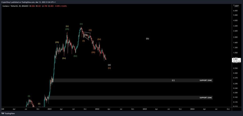 Der Krypto-Trader @CryptoTony veröffentlichte einen Cardano-Chart auf Twitter. Er ist der Meinung, dass der erste Teil der Korrektur vorbei sein könnte.