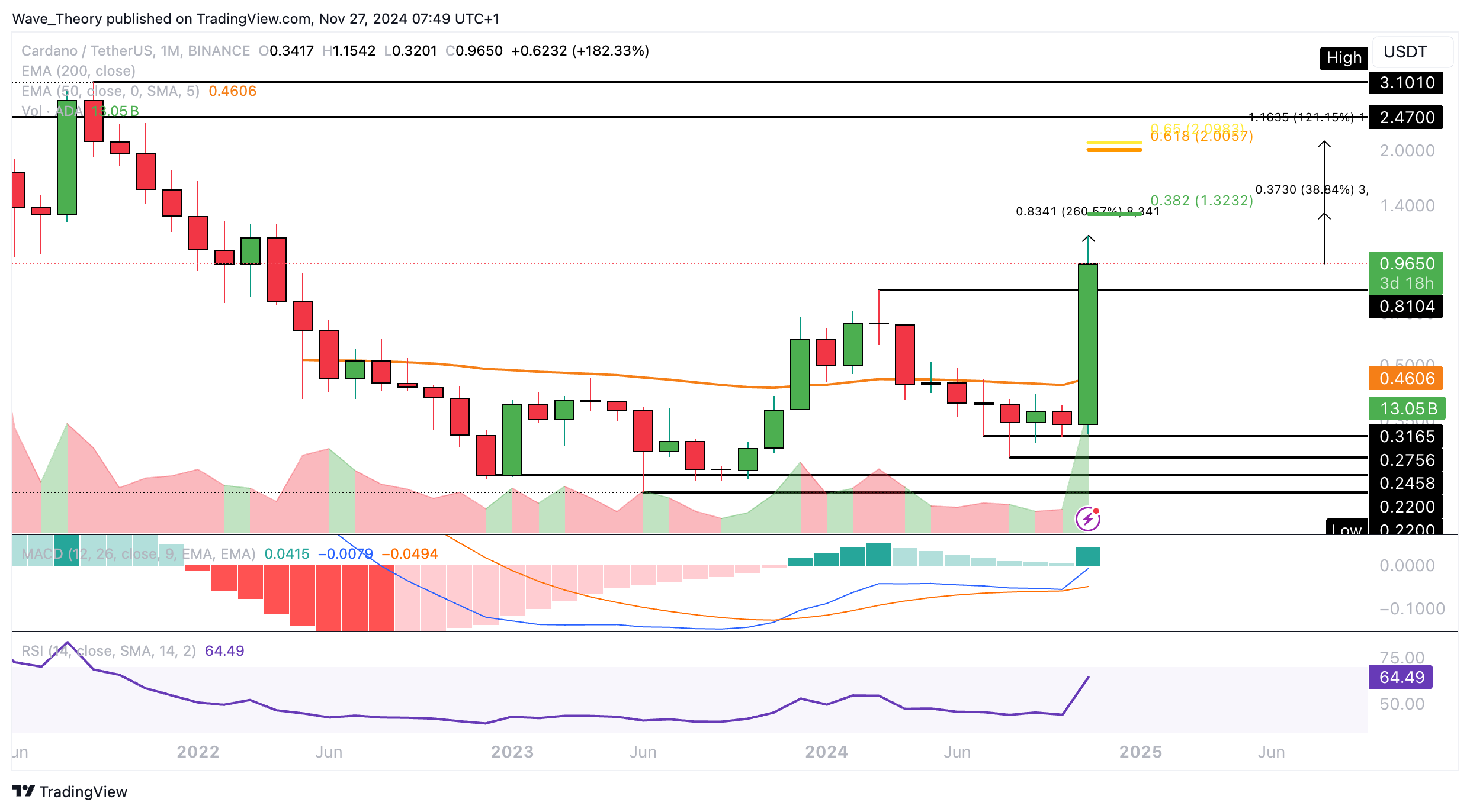 Prallt Cardano daran ab, könnte der Kurs rund 61 % steigen, um den 0,382 Fib Widerstand bei rund 1,32 USD anzuvisieren.