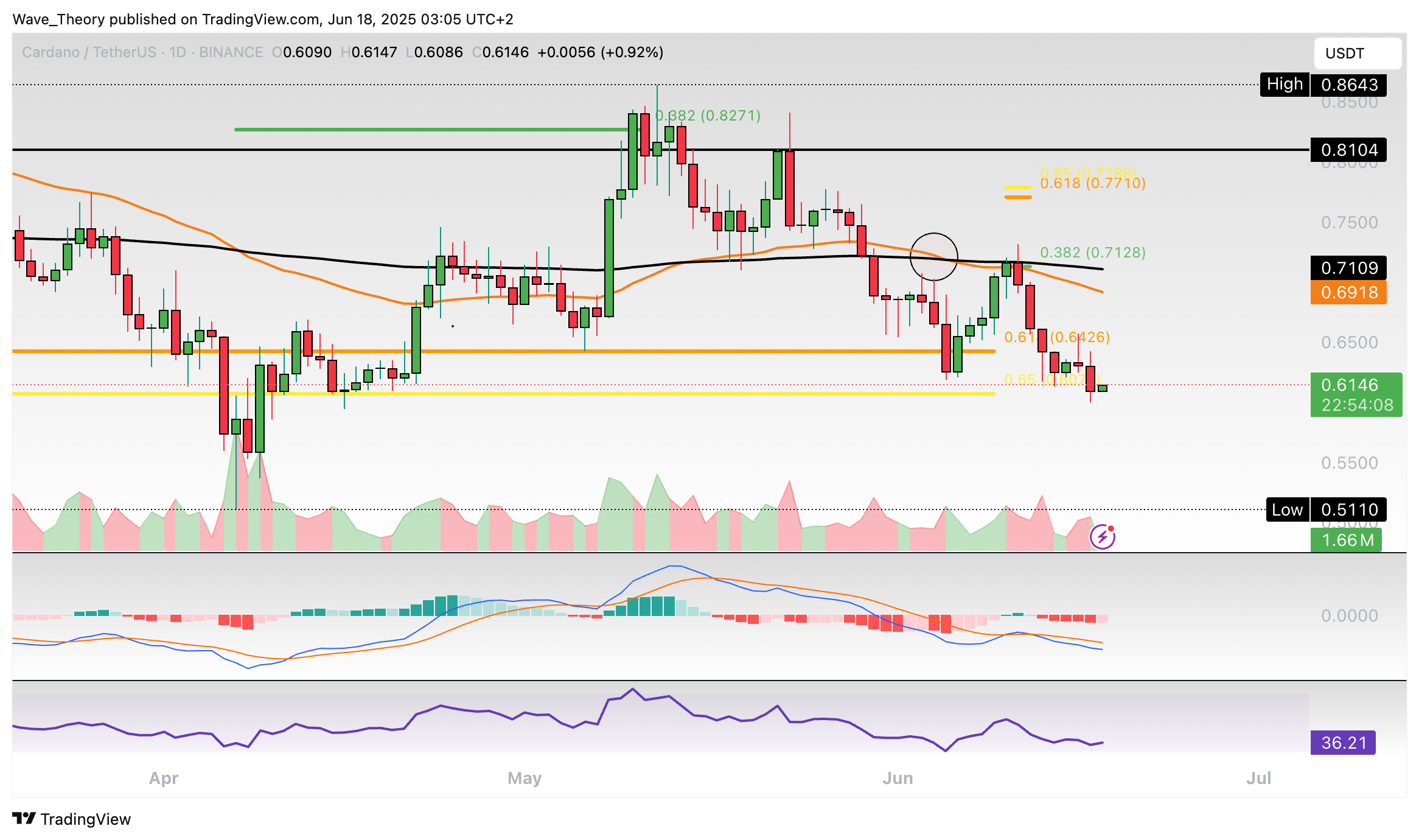 Cardano-Prognose für Mittwoch, 18. Juni 2025: Der Cardano Kurs hält sich erfolgreich an der Golden Ratio Unterstützung. Prallt er bullisch ab?