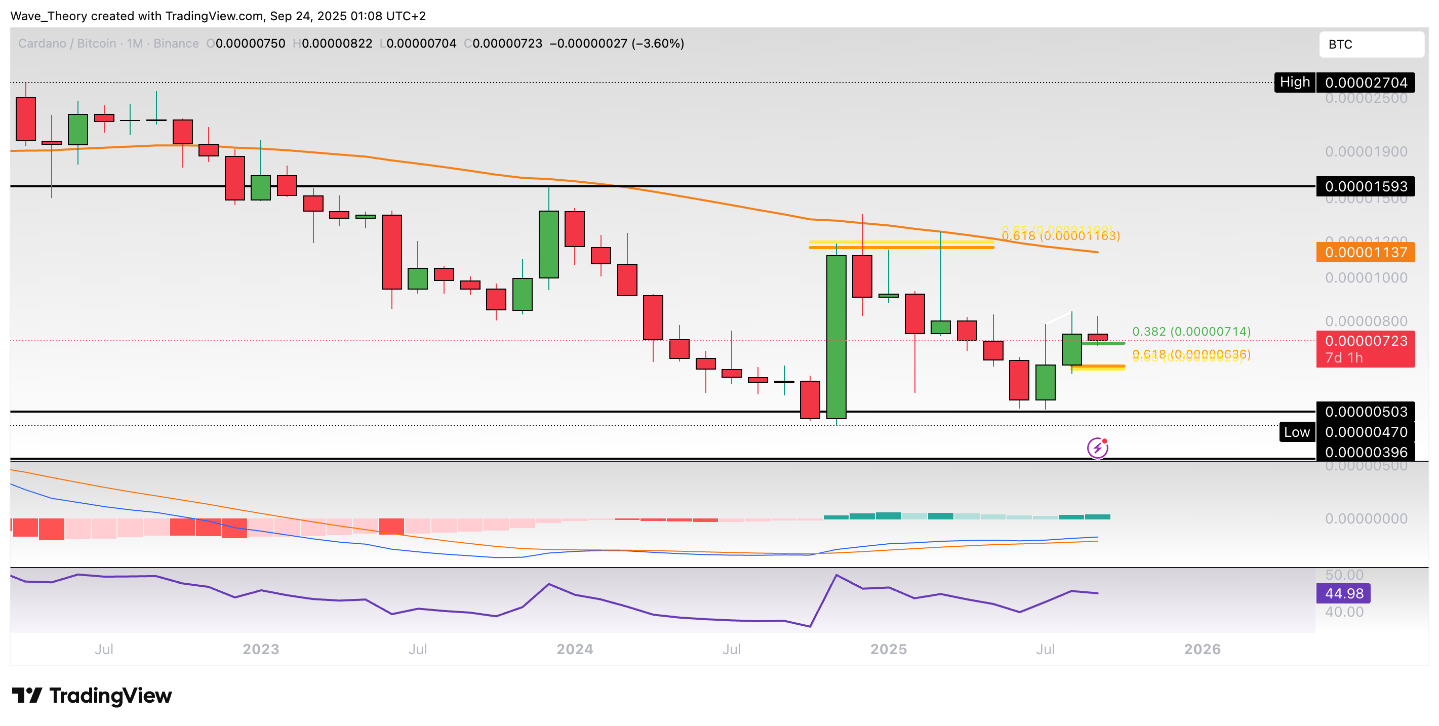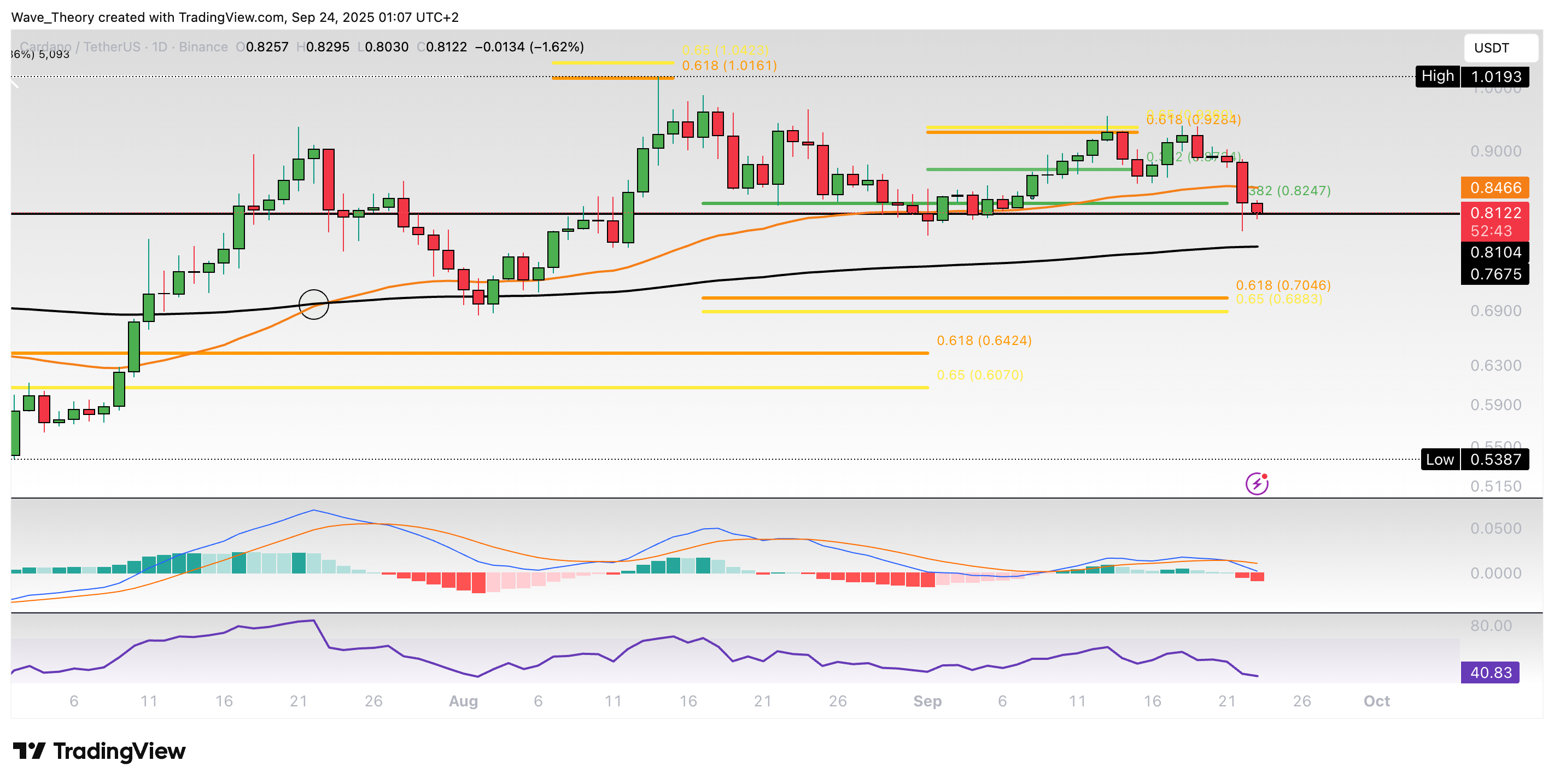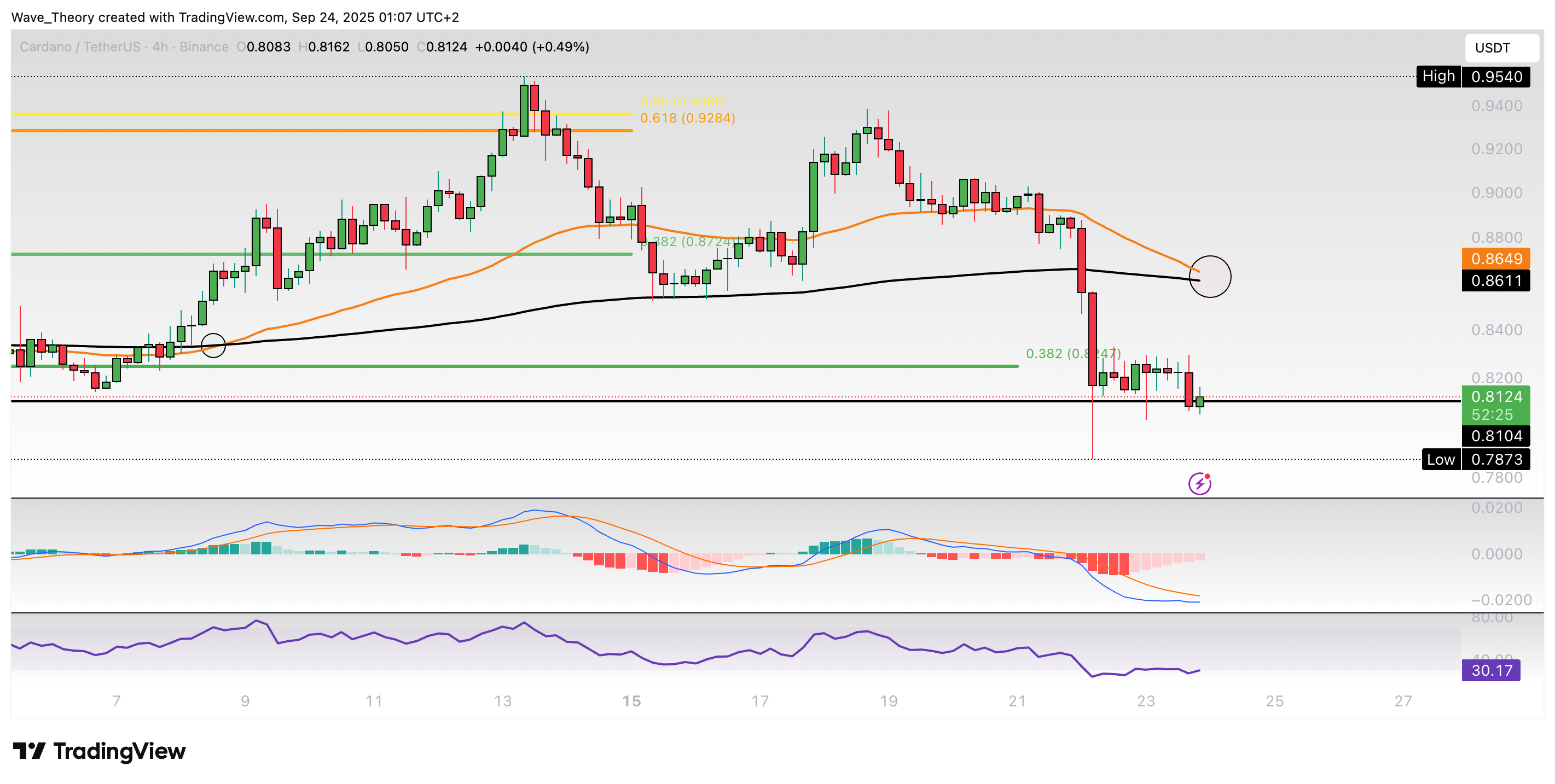 Cardano-Prognose für Mittwoch, 24. September 2025: Der Cardano Kurs kehrt zur Unterstützung zurück, nachdem der Kurs am Golden Ratio Widerstand bärisch abgewiesen wurde.