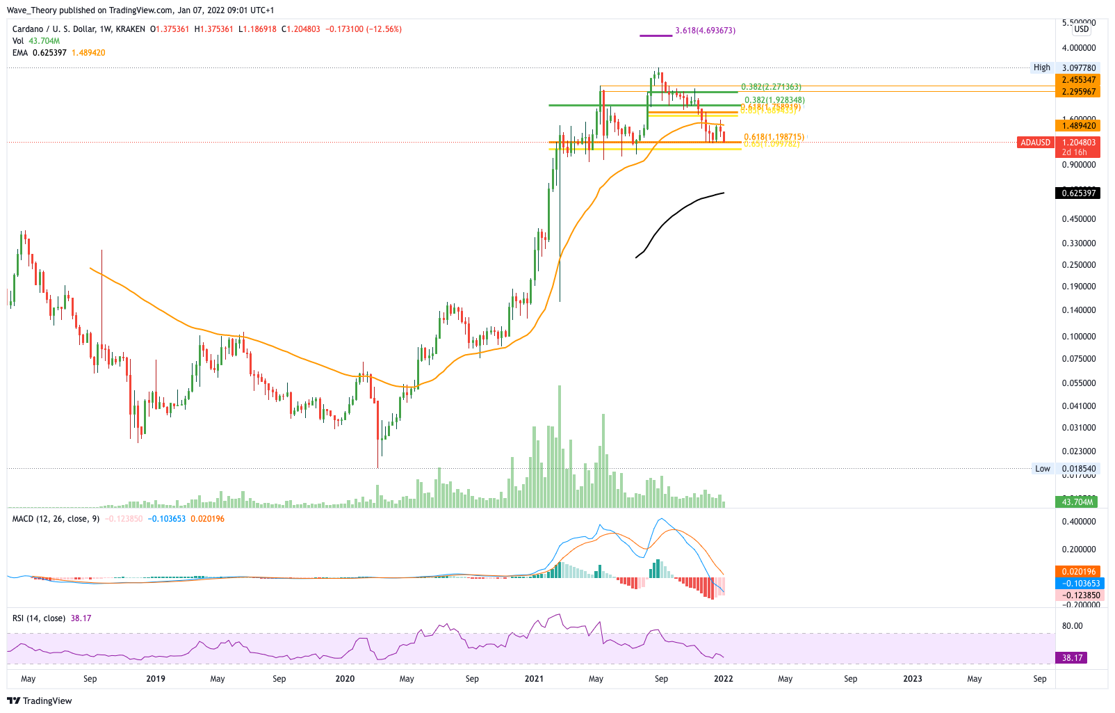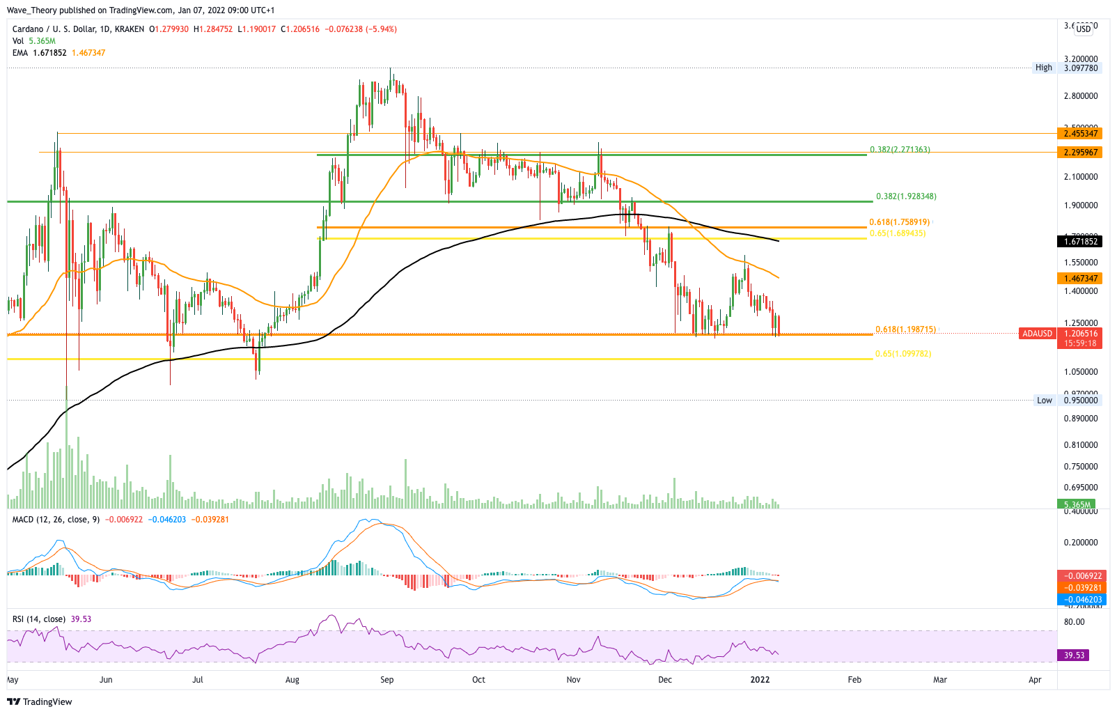 Cardano Kurs befindet sich an Golden Ratio Unterstützung bei rund 1,2 USD