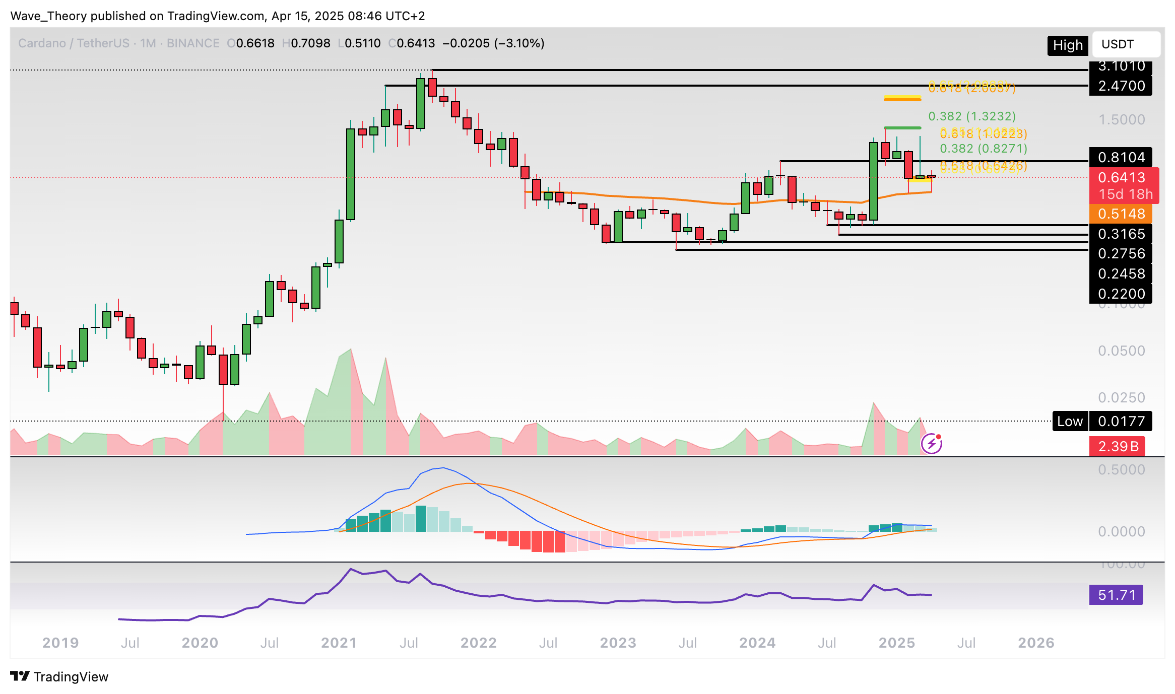 Cardano konnte an der 50-Monate-EMA Unterstützung bei rund 0,5145 USD bullisch abprallen. Damit befindet sich Cardano jetzt sogar wieder über der Golden Ratio Unterstützung bei rund 0,64 USD.