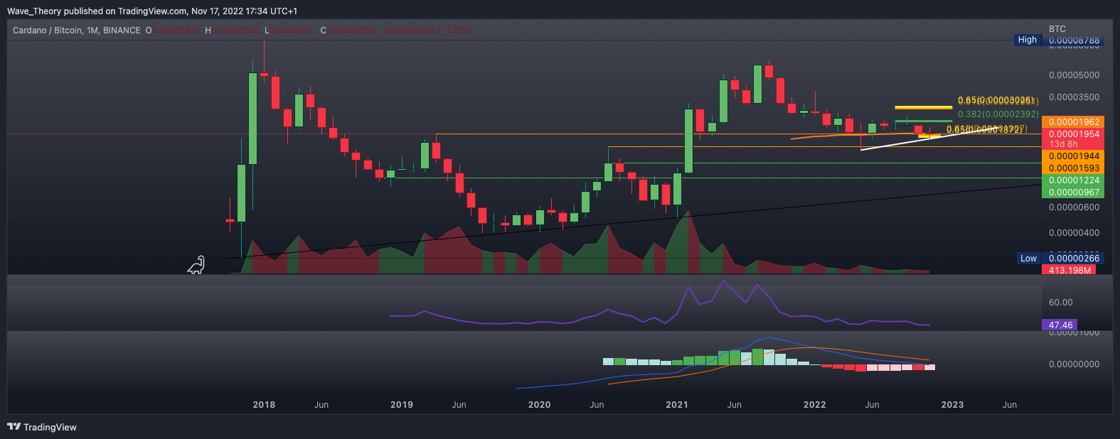 Gegen BTC befindet sich der Cardano Kurs an signifikanter Unterstützung