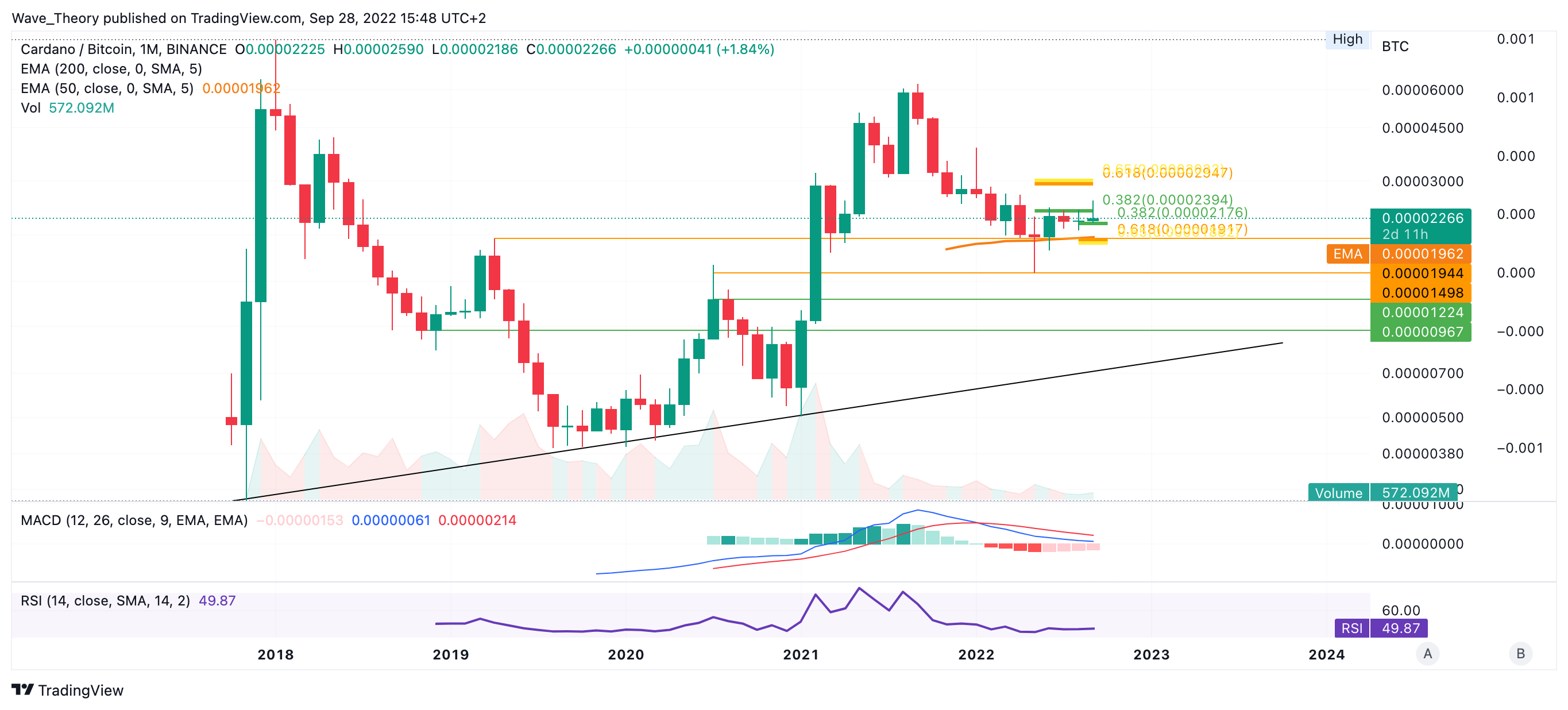 Gegen BTC stößt der Cardano Kurs auf Fib Unterstützung