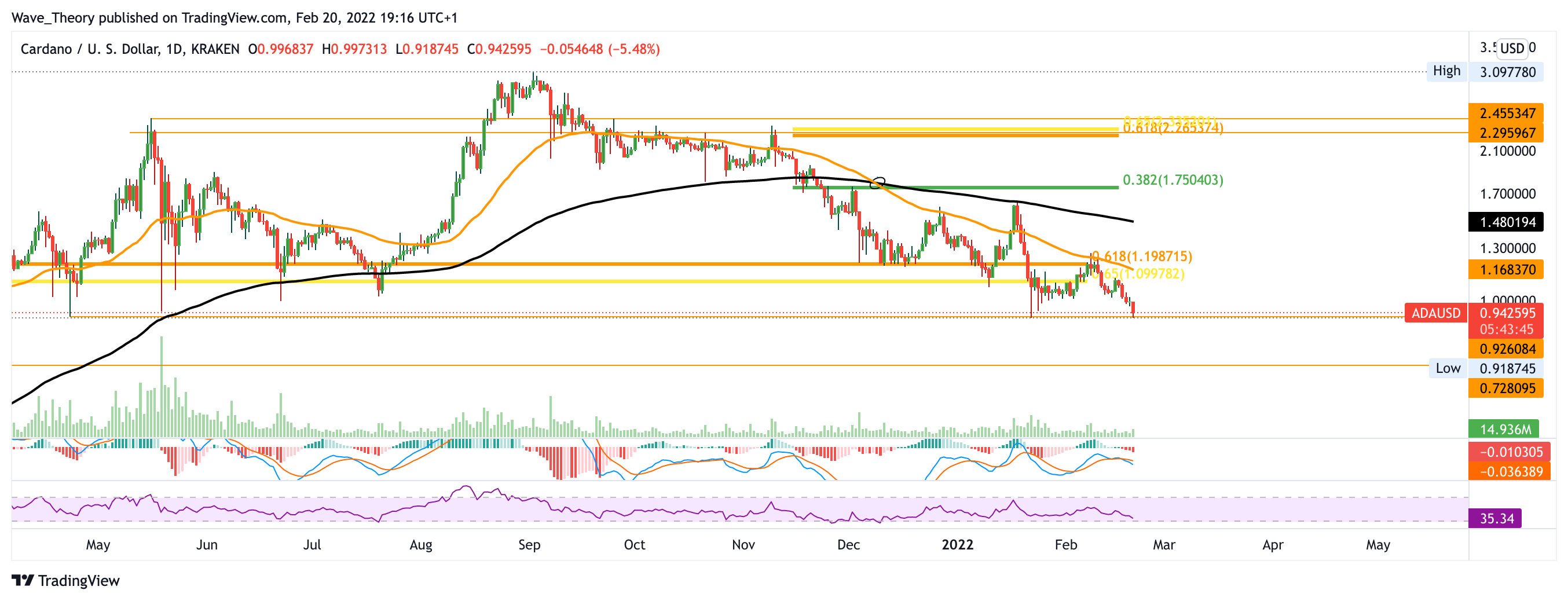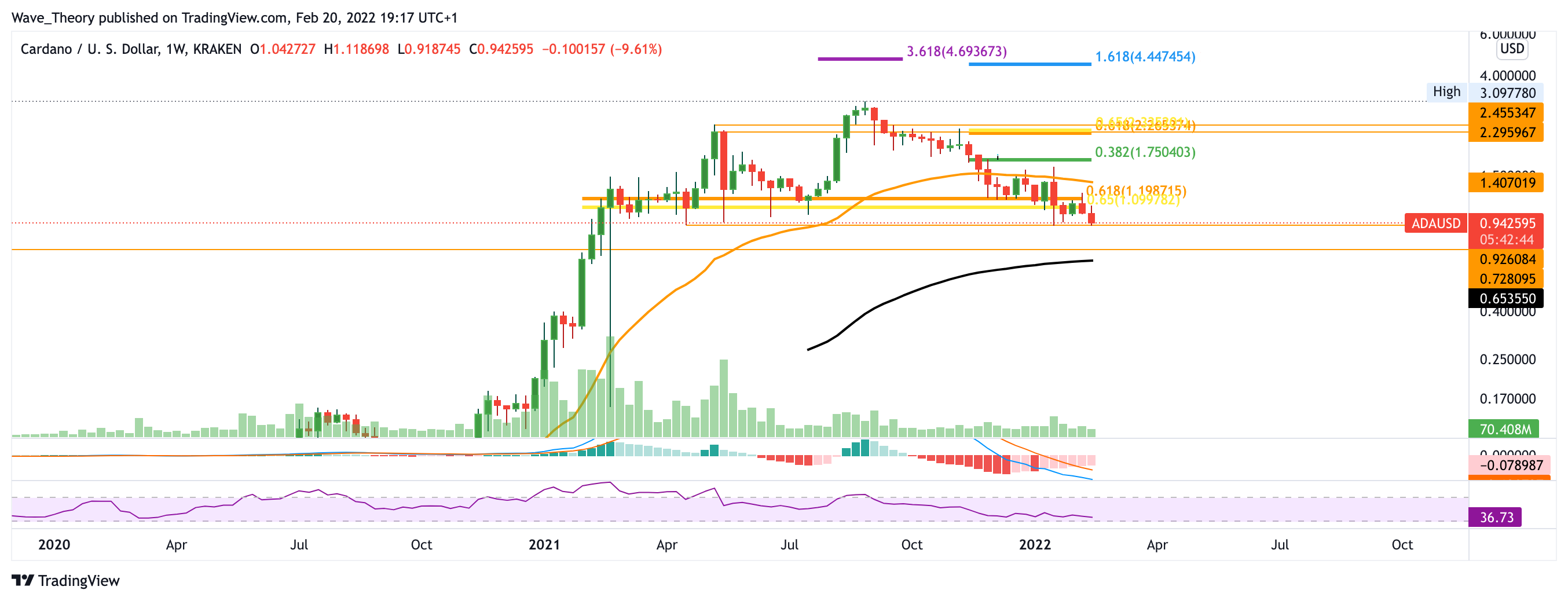 Der Cardano Kurs hat die Preismarke von 1,00 USD bärisch durchbrochen und befindet sich derzeit in Unterstützungszone. Fällt der ADA Preis auf 0,70 USD?