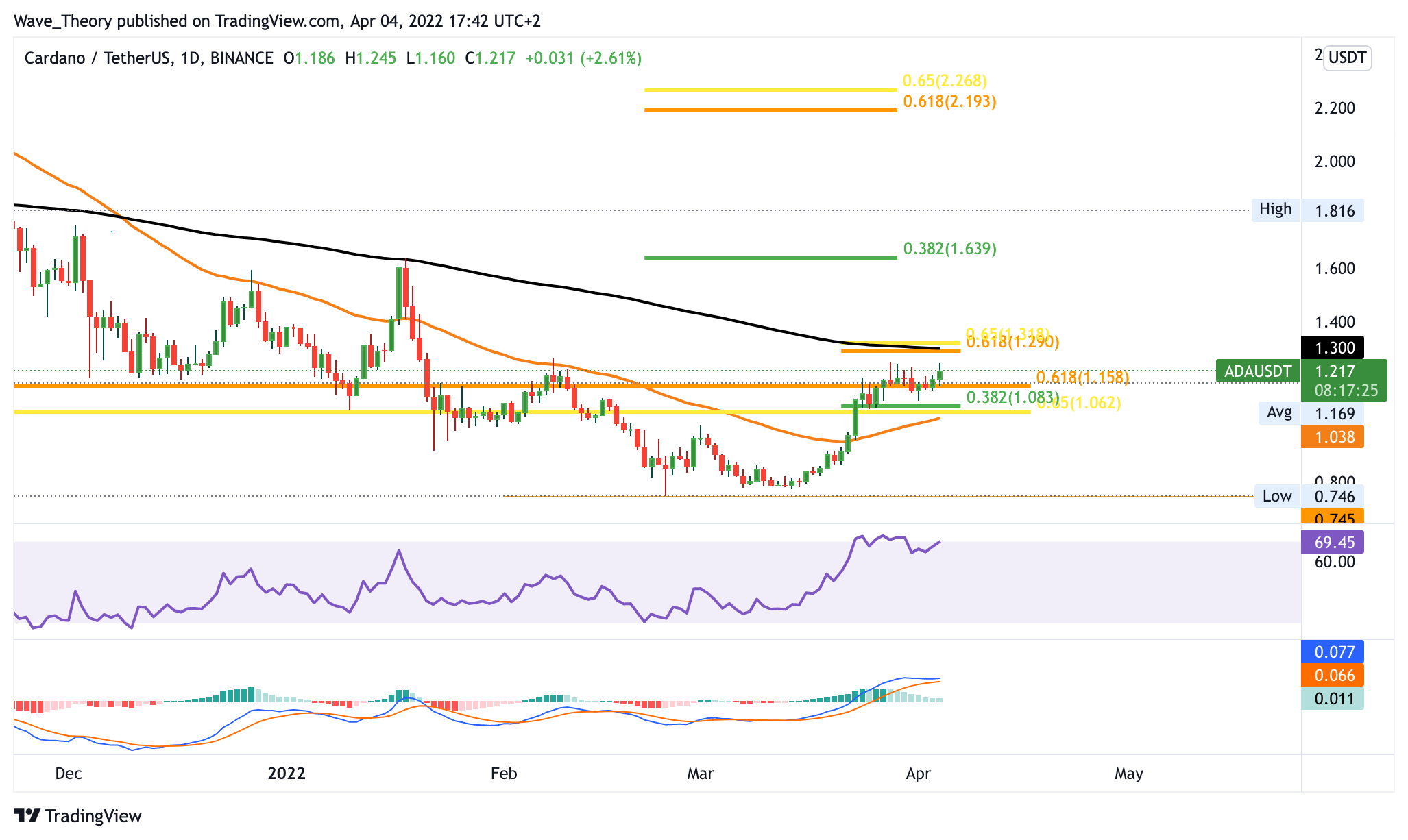 ADA Kurs kann noch rund 16 % steigen bis er auf die Golden Ratio stößt