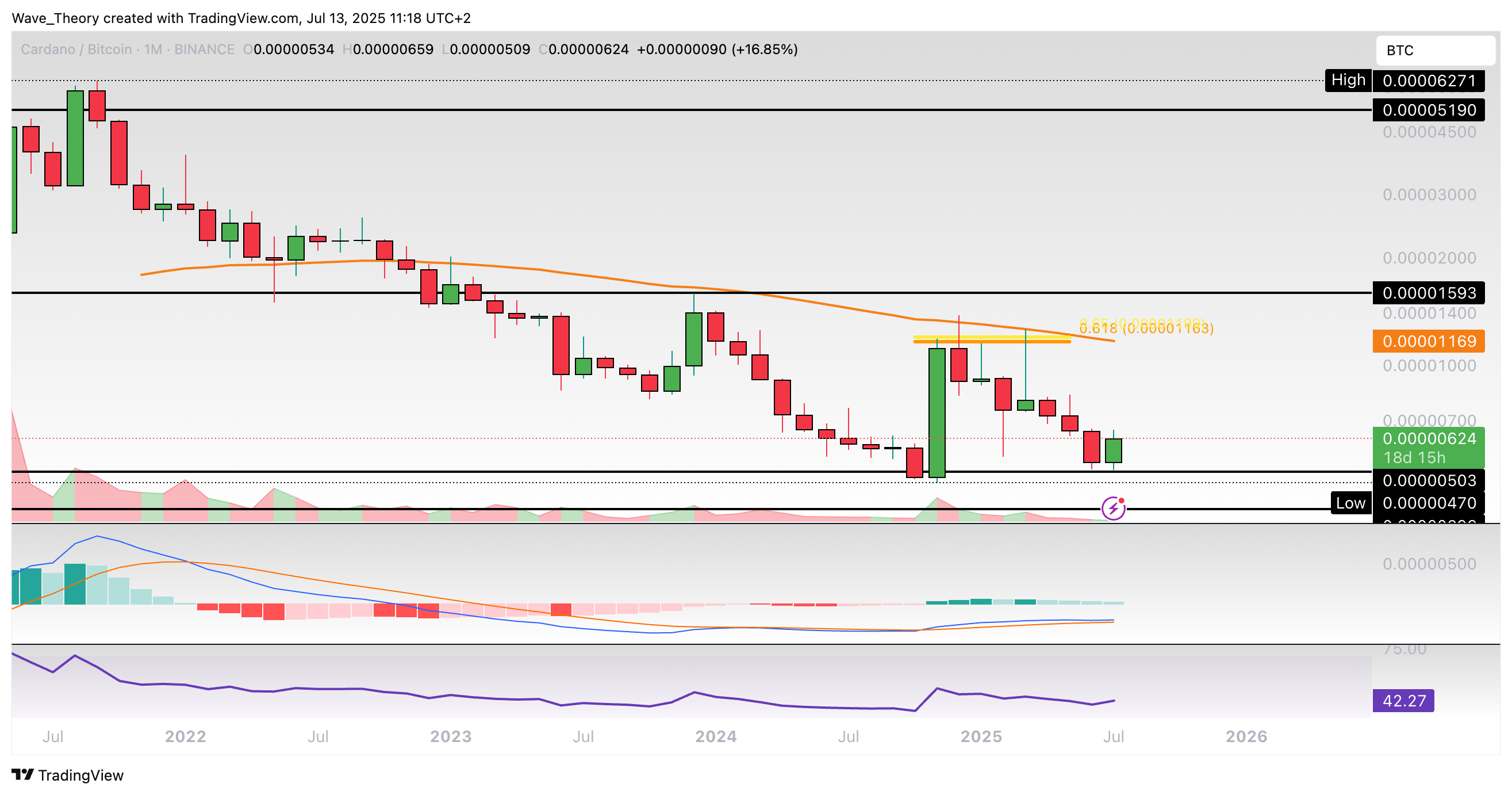 Gegen Bitcoin fällt der Cardano Kurs zu einer signifikanten Unterstützungszone