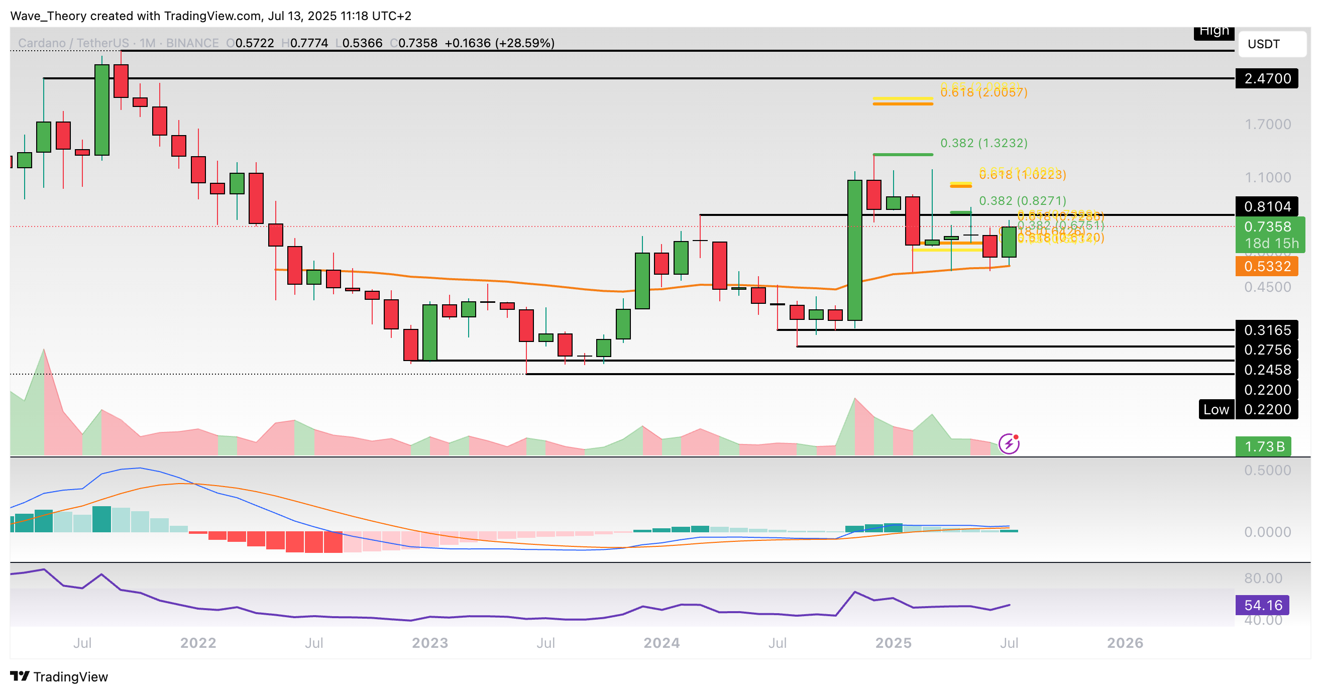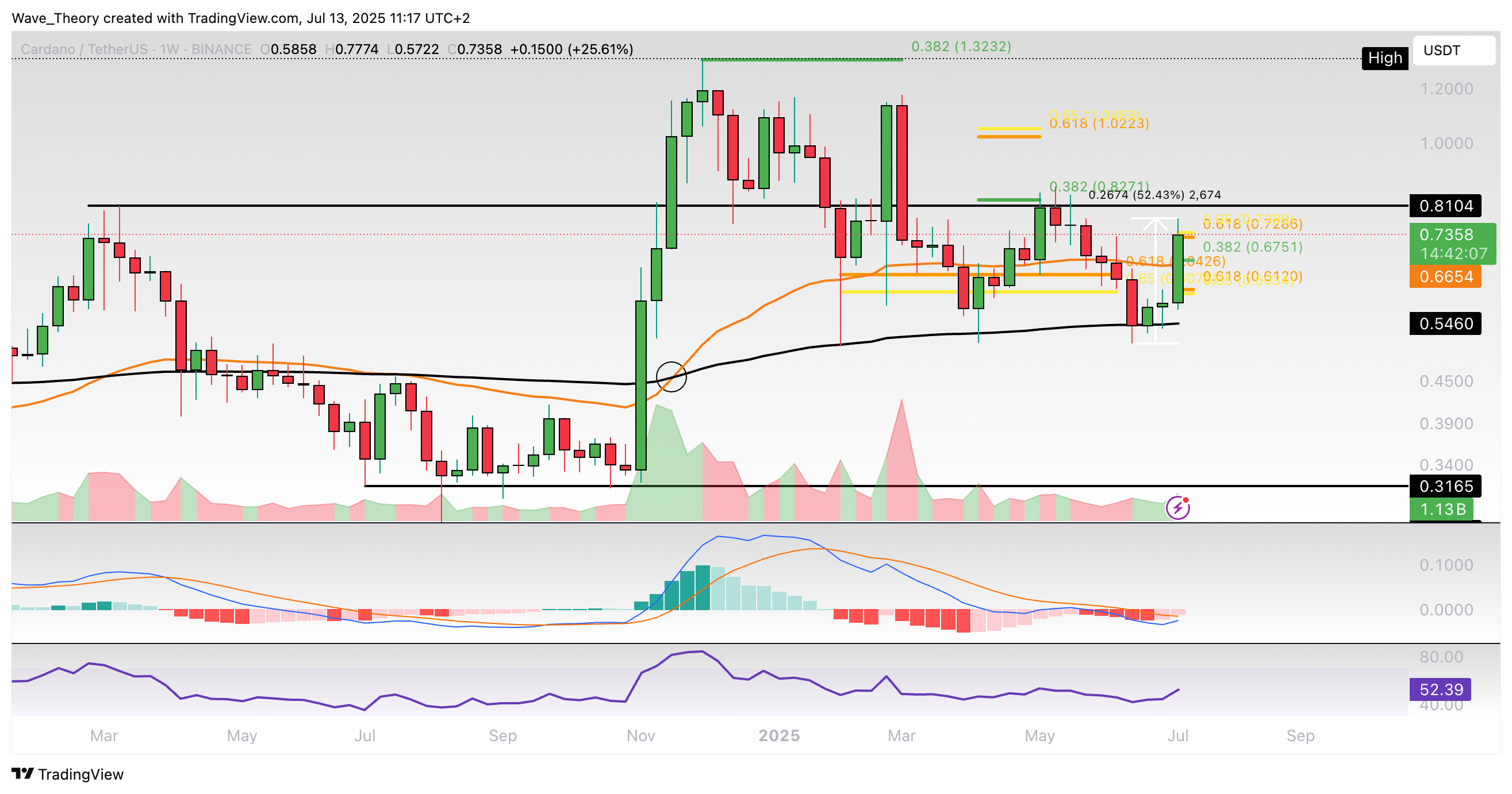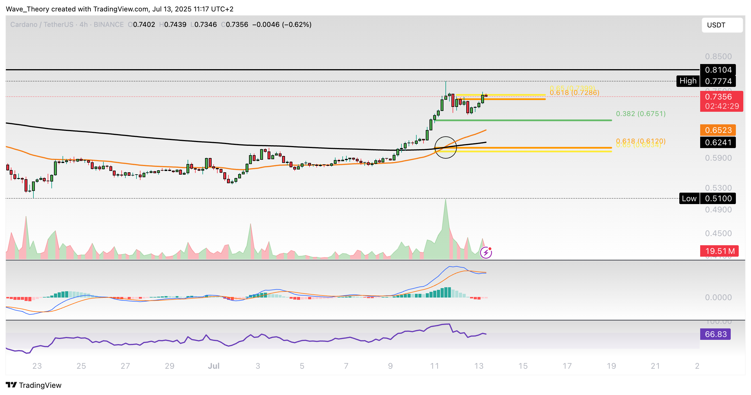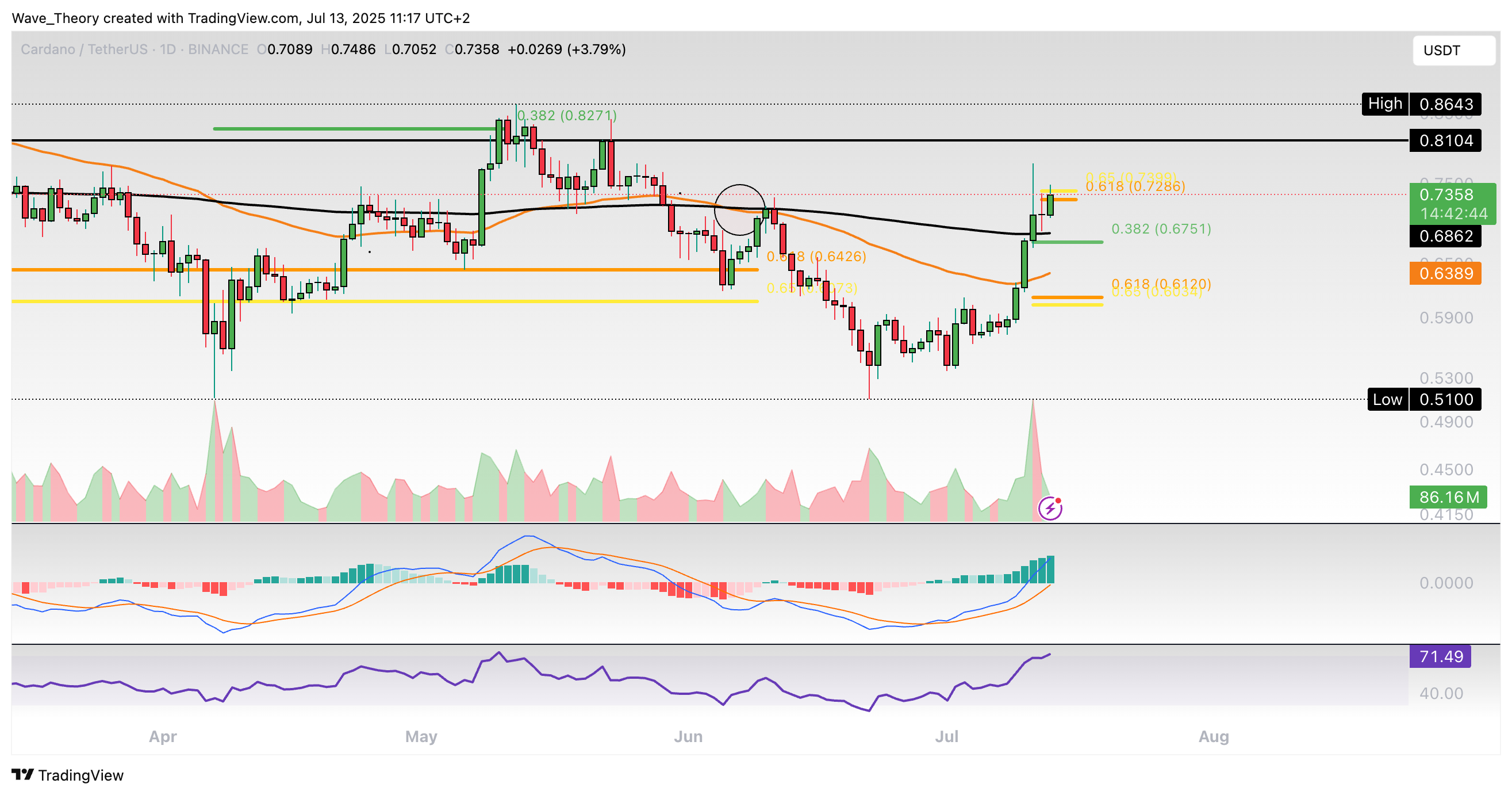 Cardano-Prognose für Sonntag, 13. Juli 2025: Der Cardano Kurs stößt jetzt auf kritischen Golden Ratio Widerstand. Wird Cardano bullisch ausbrechen?