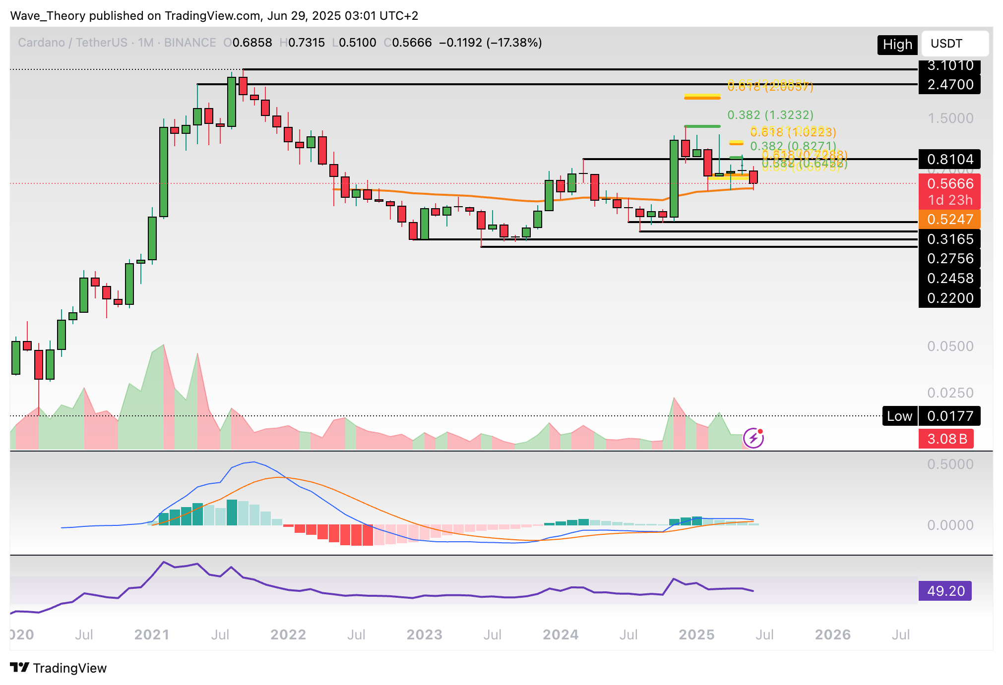 Auch im Monatschart stößt Cardano jetzt auf signifikante Unterstützung
