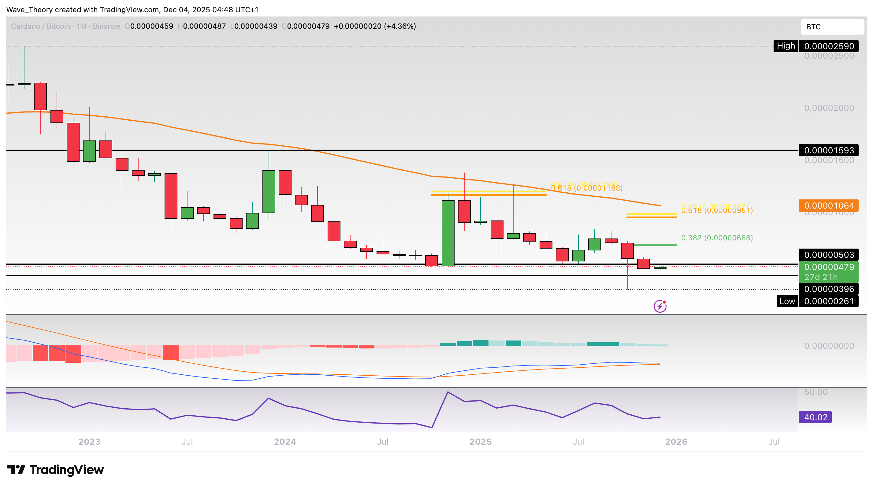 Cardano-Prognose für Donnerstag, 04. Dezember 2025: Der Cardano Kurs könnte jetzt noch tiefer fallen, um die Unterstützung zu erreichen.