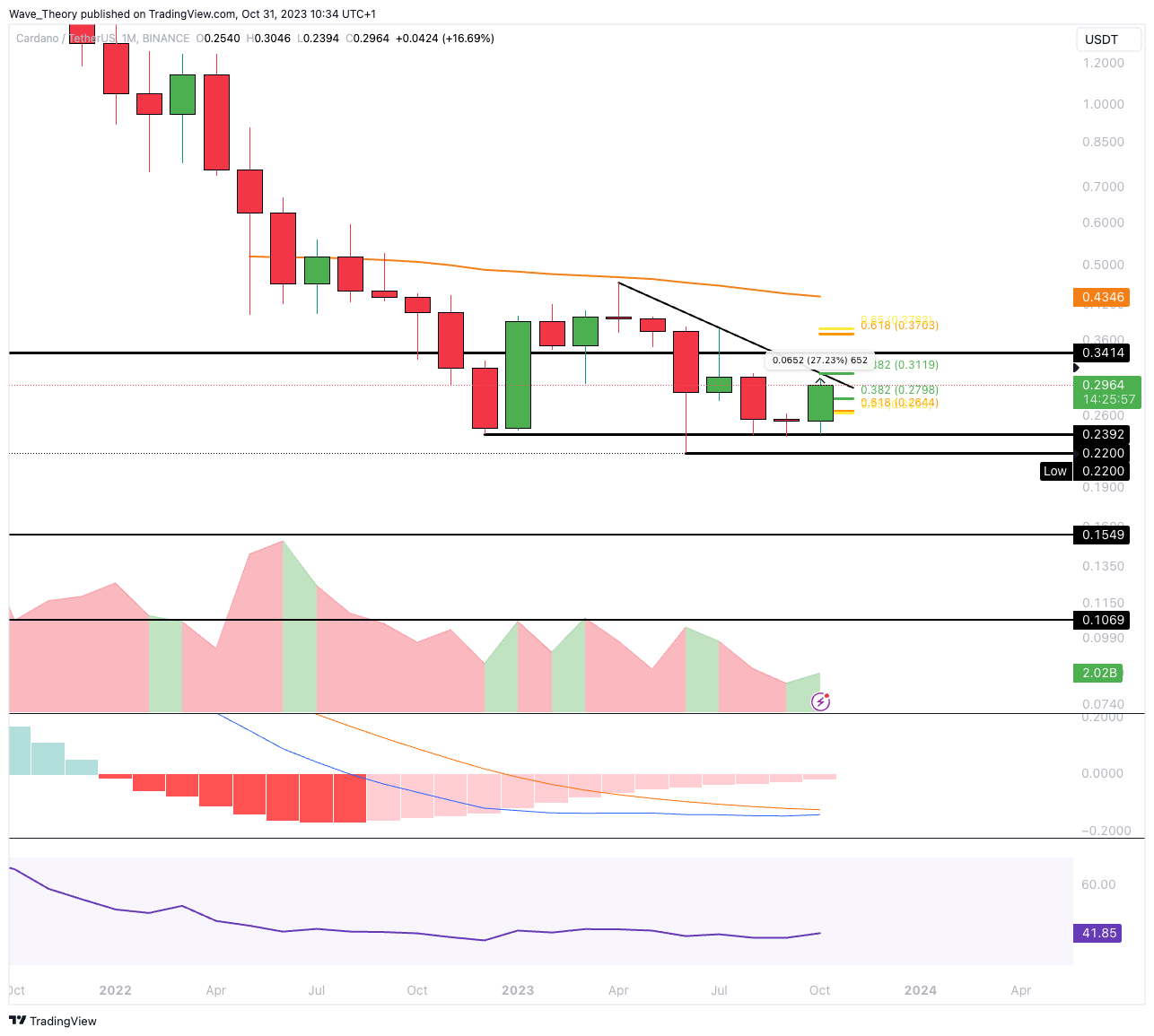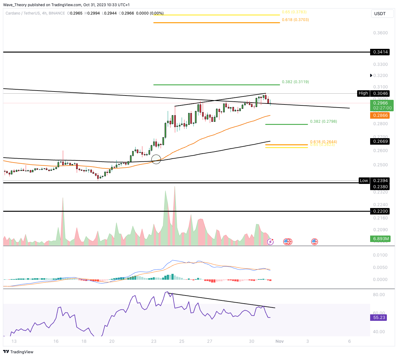 Der Cardano Kurs ist kurz davor, den 0,382 Fib Widerstand bei rund 0,312 USD zu erreichen