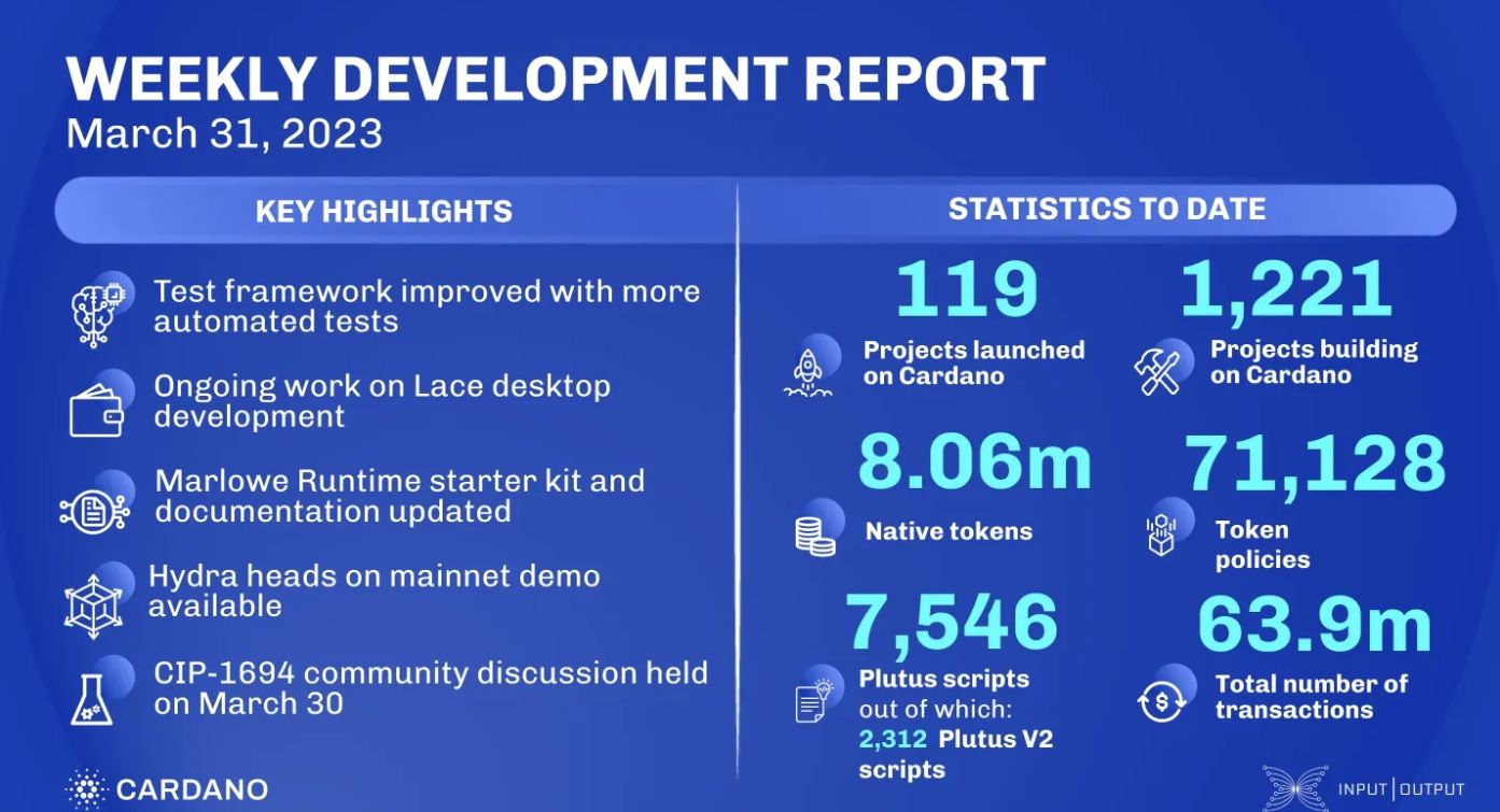 Wie Essentialcardano berichtet, lancierten Entwickler:innen alleine in der letzten Märzwoche 119 neue Projekte auf der Blockchain. Außerdem arbeiten die Teams aktiv an 1.221 Projekten.
