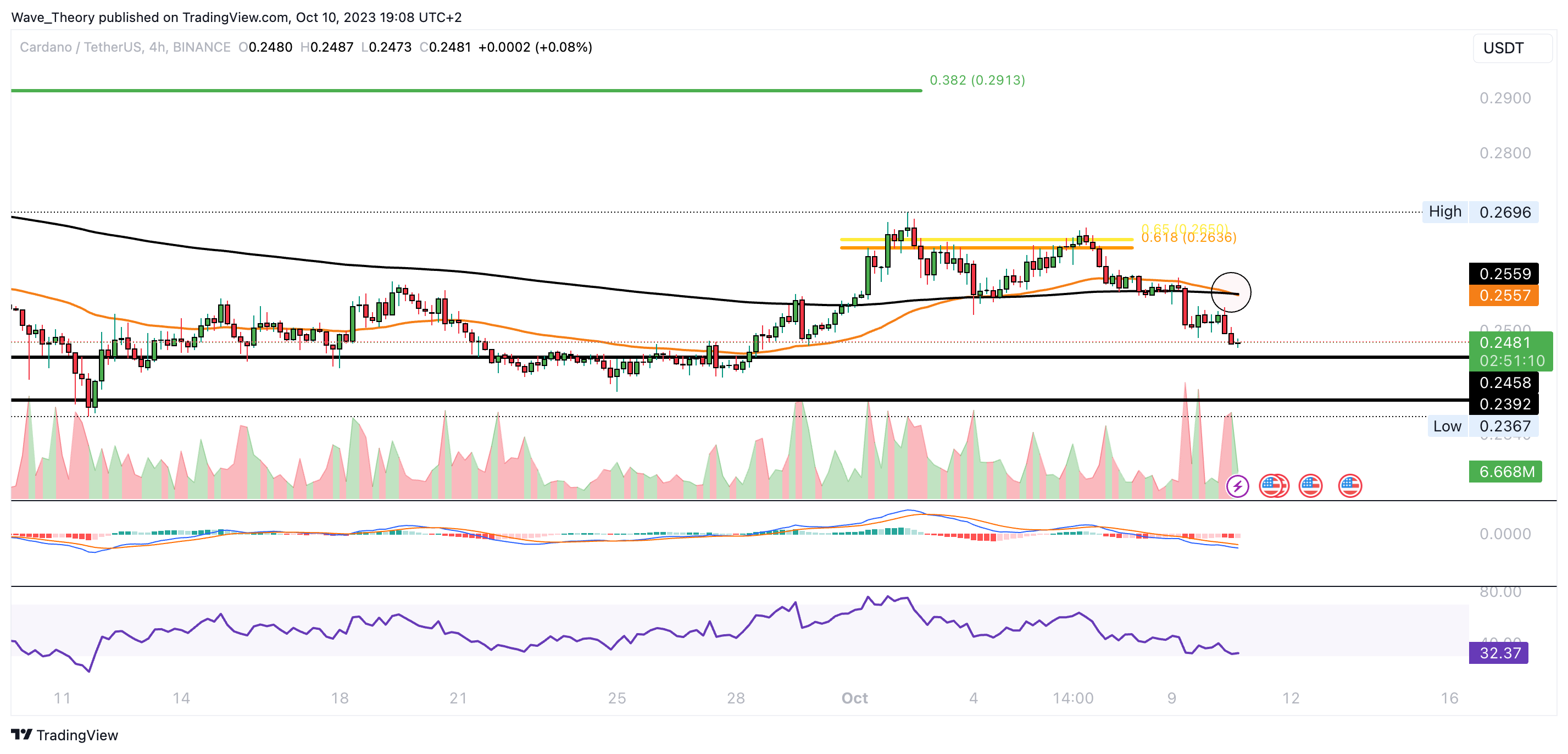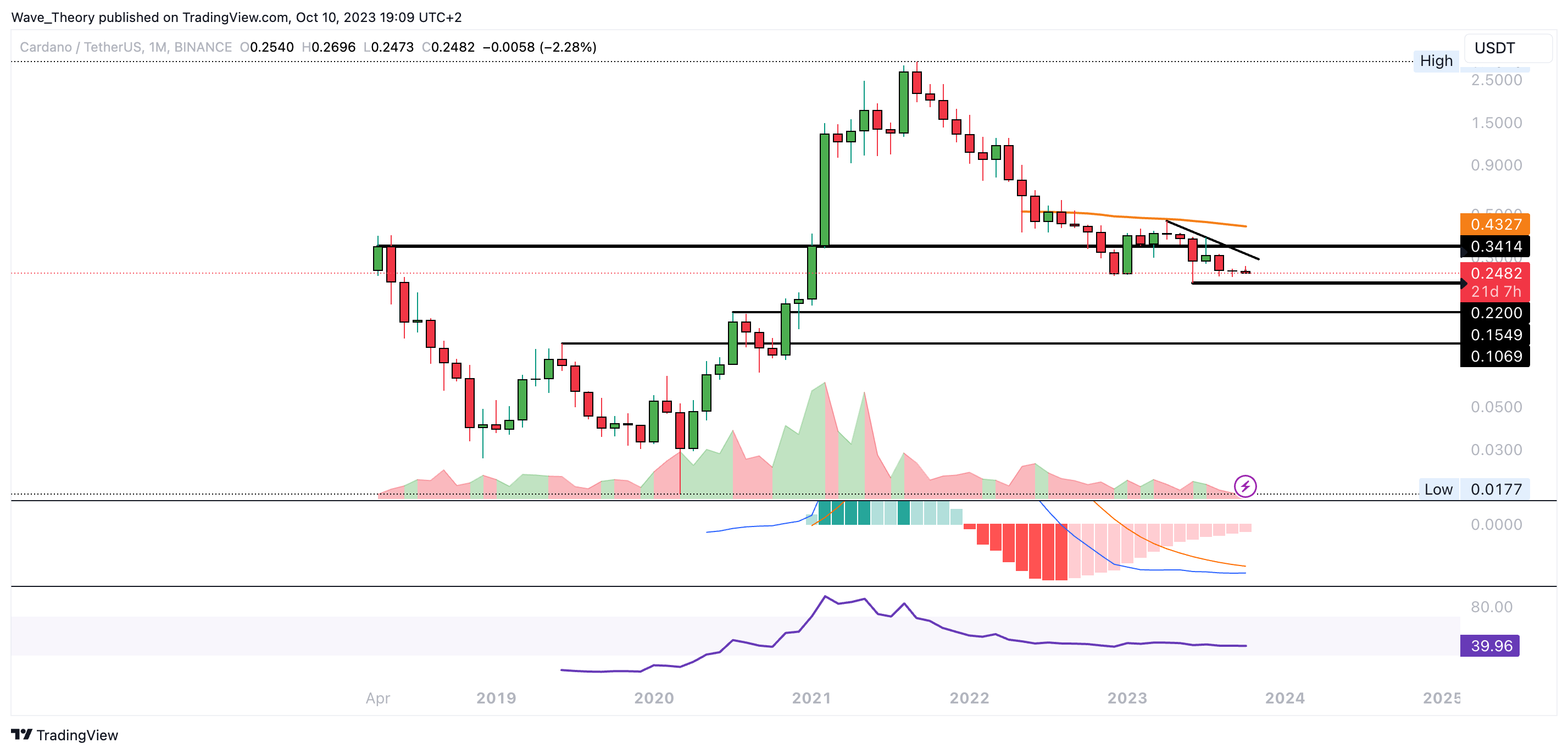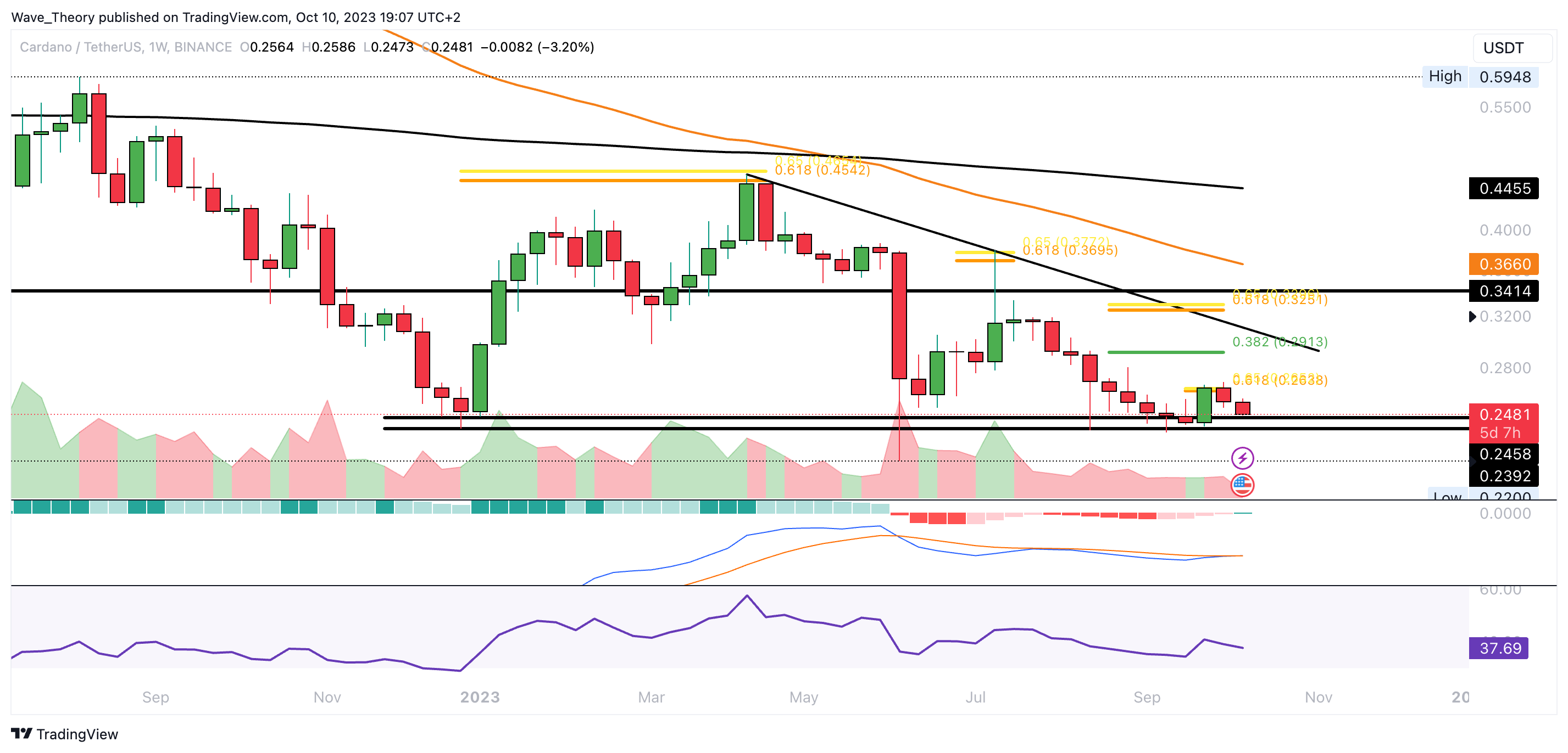 Sponsored SponsoredNichtsdestoweniger könnte der Kurs erneut an der Unterstützungszone zwischen rund 0,24 USD und 0,246 USD abprallen. Der RSI erreicht immerhin bald überverkaufte Regionen, was ein eher bullisches Zeichen ist.