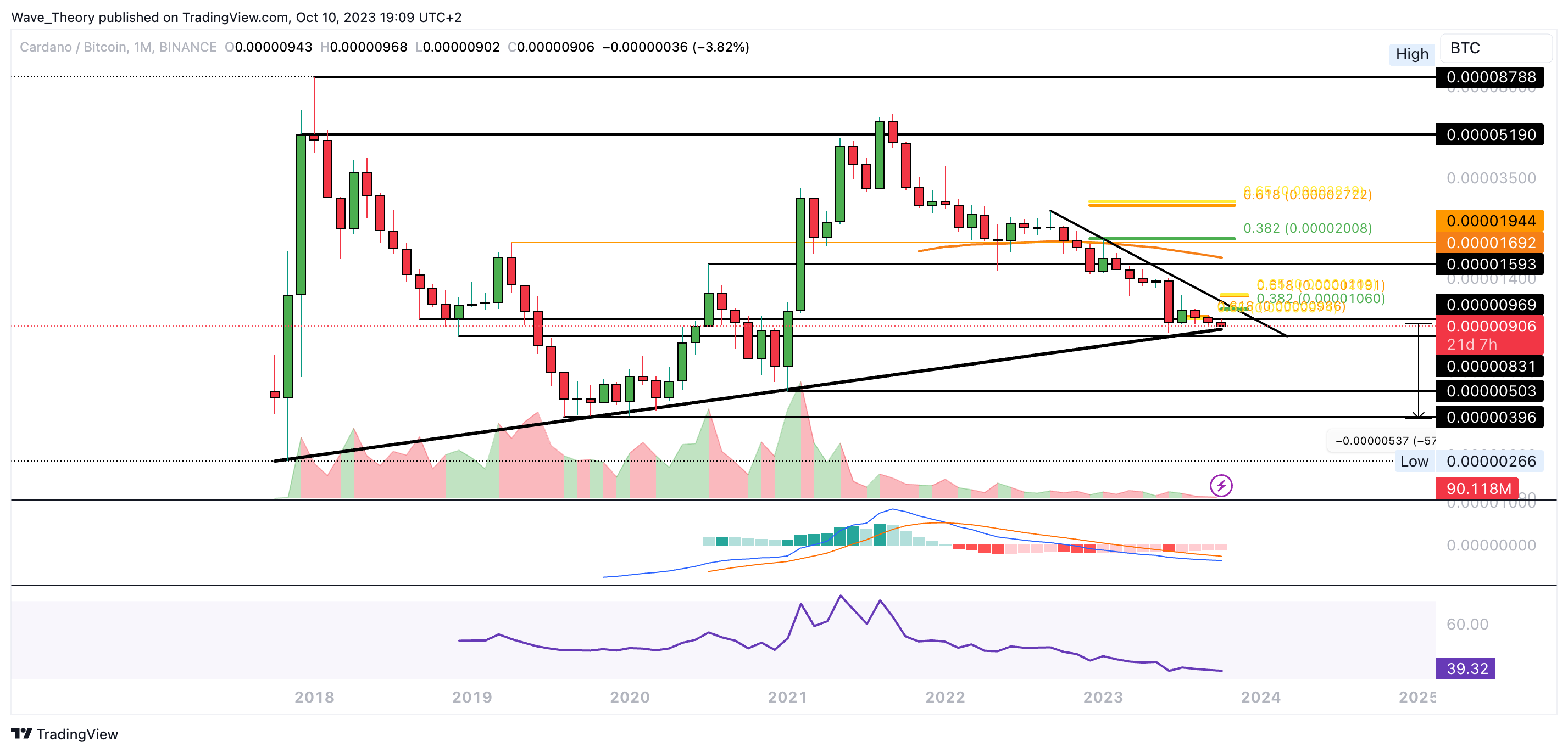 Auch gegen Bitcoin könnte der Cardano Kurs eine Etage tiefer fallen