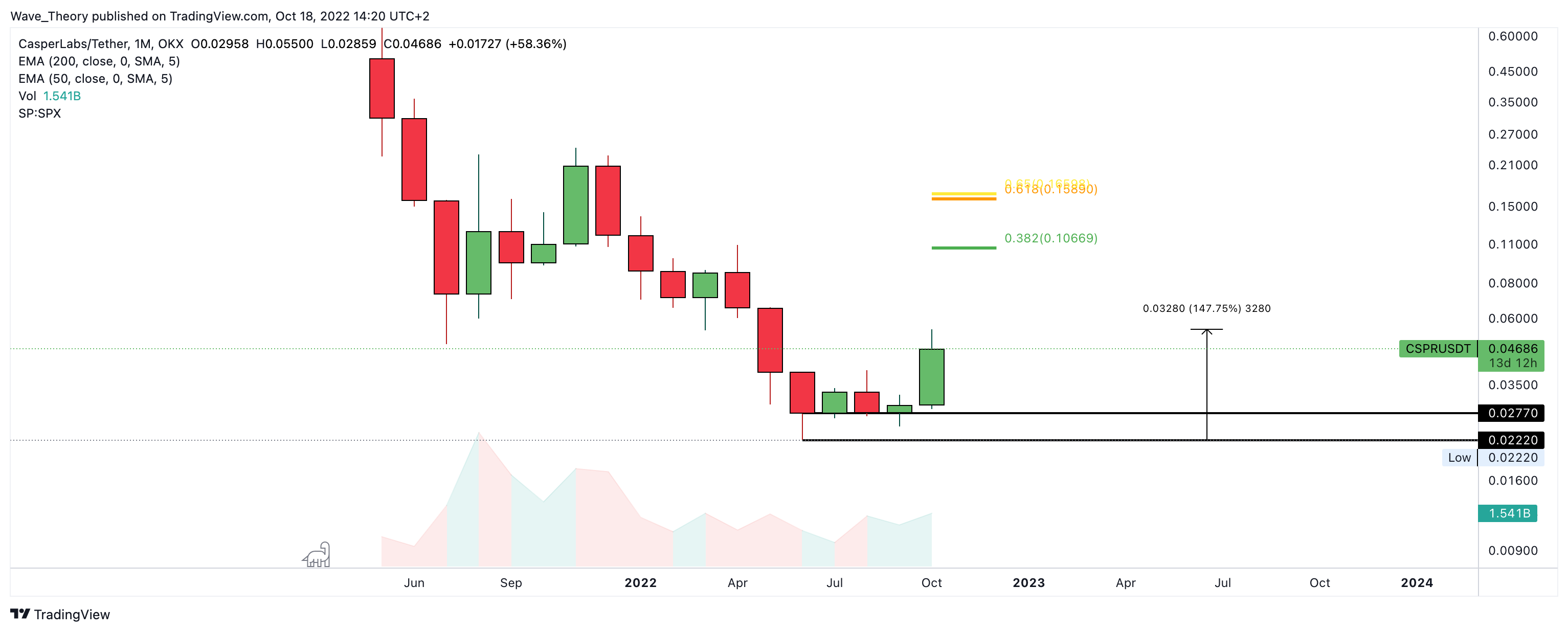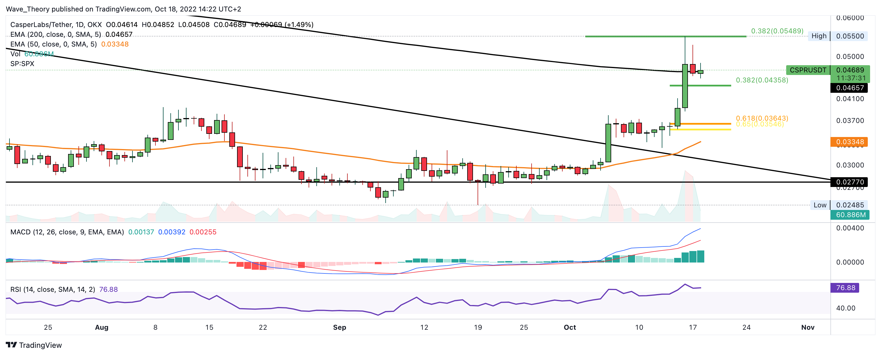 Nach unten hin findet Casper zwischen 0,0222 USD und 0,0277 USD signifikante Unterstützung.